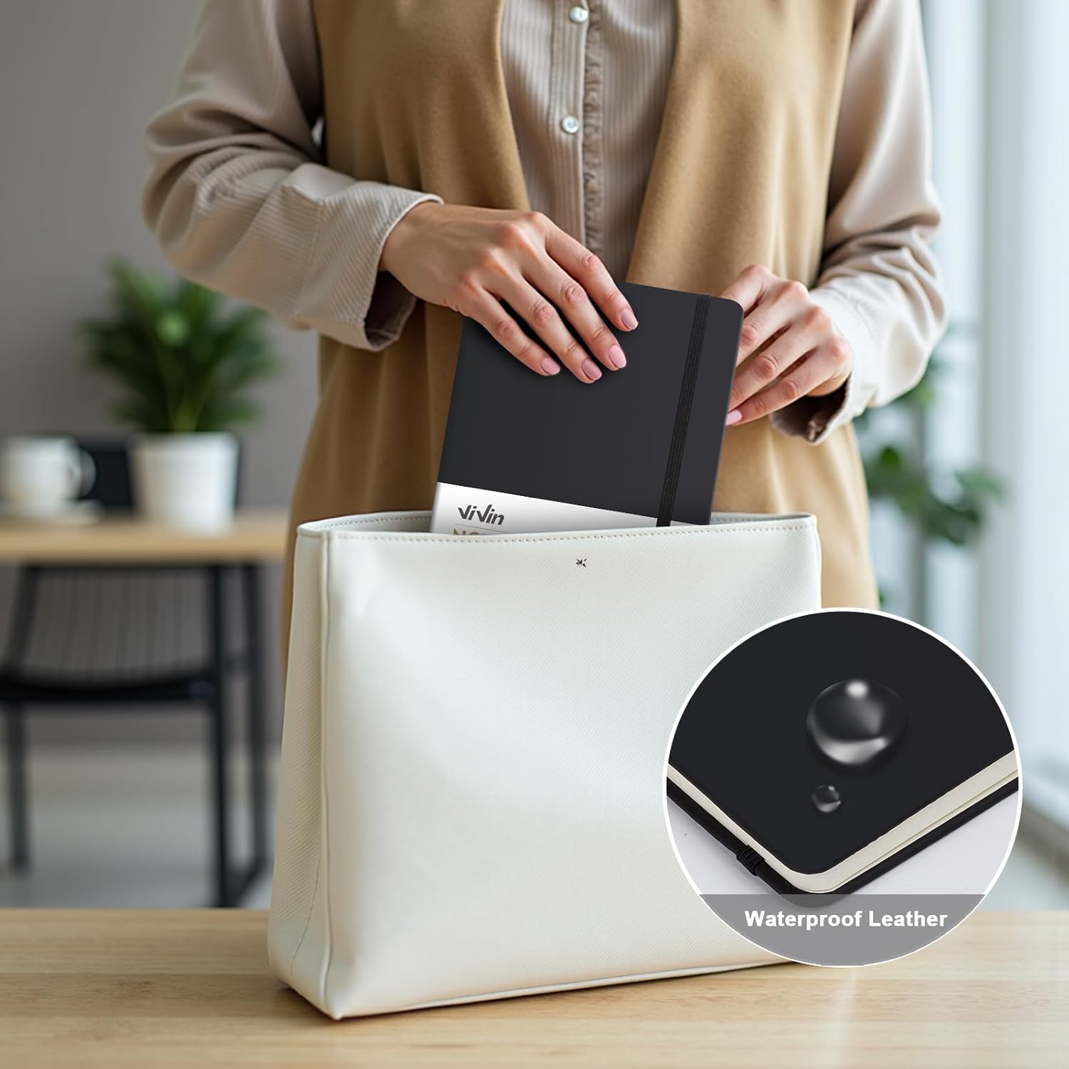 • 【Hardcover Leather Journal】The journaling notebooks crafted with waterproof faux leather, this A5 notebook (5.5"x8.3") balances durability and portability. The smooth-touch cover withstands daily commutes while protecting your ideas in style.