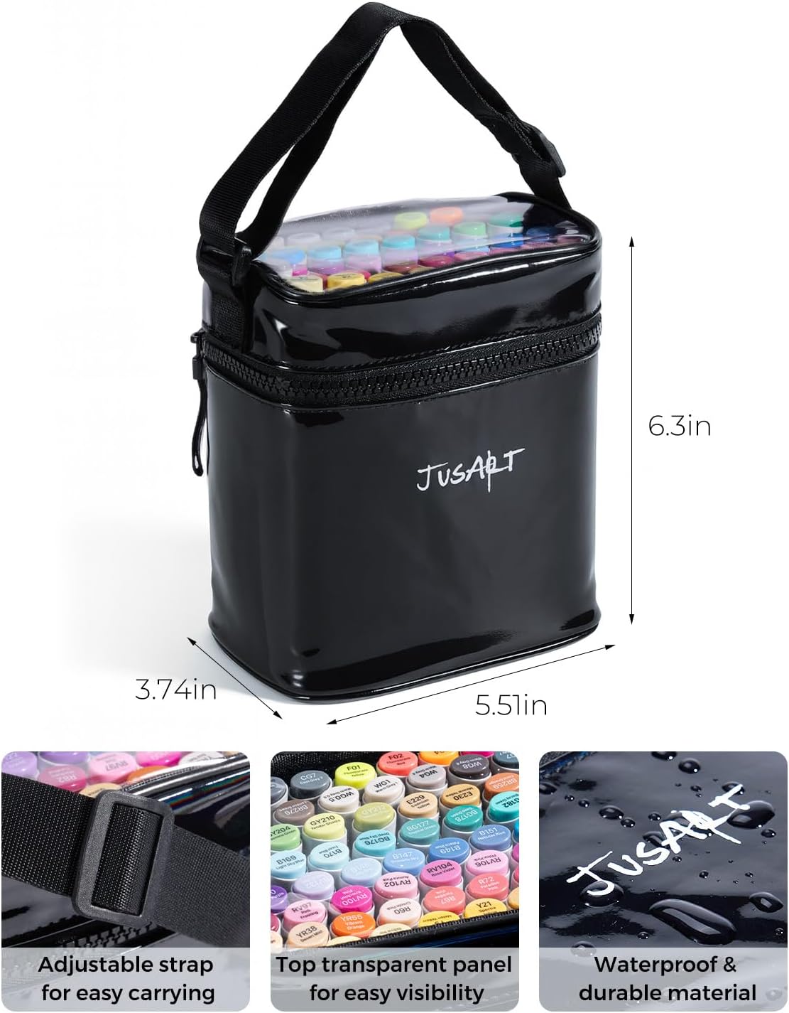 - Alcohol Marker Case: This adjustable and transparent marker case features a convenient strap for easy carrying and a top clear panel for quick content visibility. Crafted from shimmering PVC glossy material that gleams under light or sunlight, this case is waterproof and highly durable. These alcohol brush markers are perfect for on-the-go creativity and make a thoughtful gift for any art lover