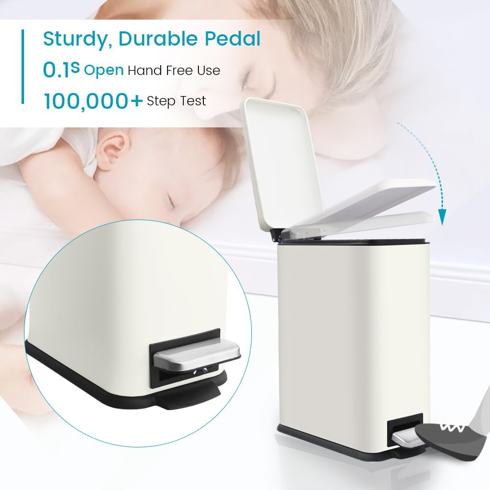 Bathroom Trash Can with Lid, 16.7L/ 4.4 Gallon Trash Can with Removable Inner Bucket, Soft Close lid, Stainless Steel Step Pedal Garbage Can for Bathroom, Kitchen, Home Office, White