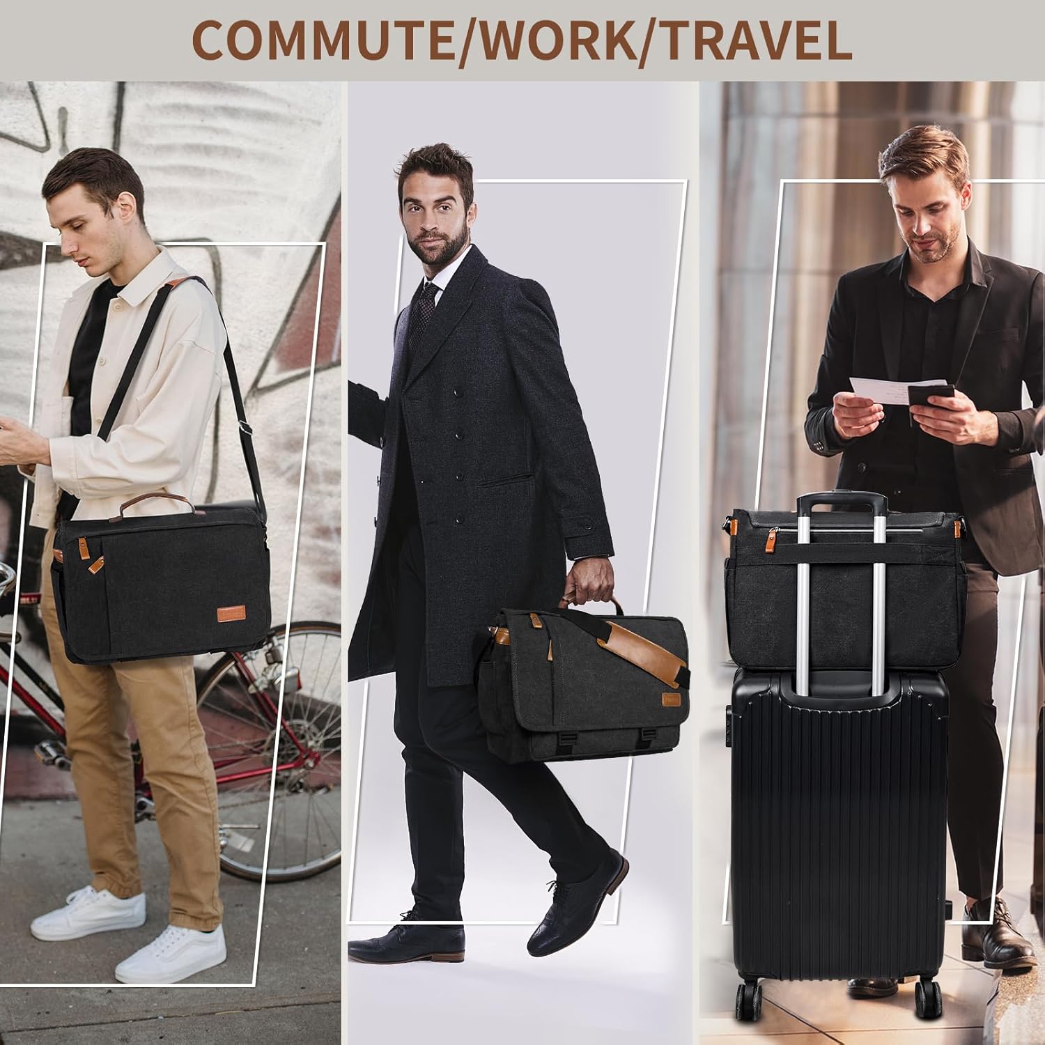 ESTARER Men's Messenger Bag 17.3 Inch Upgraded, Water-resistant Canvas Laptop Bag, Computer Shoulder Bag for College Travel Work, Dark Grey