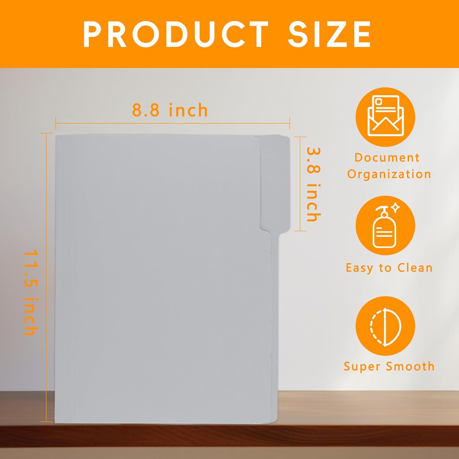 100 Packs File Folder,Grey File Folders Letter Size,1/3-Cut Tabs,8.5x11 Inch File Folders for Office,School and Home,Organizer Documents