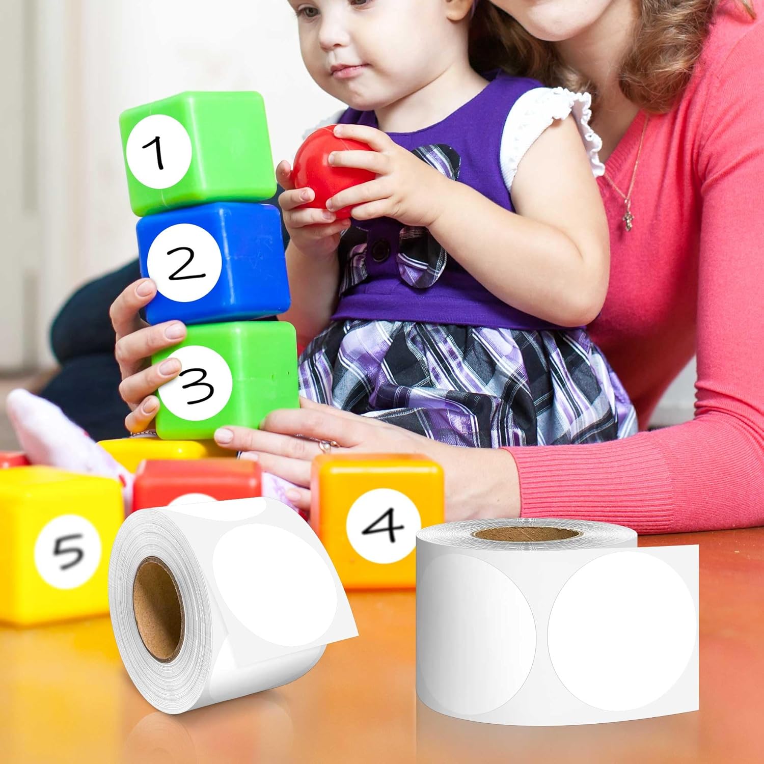 PARLAIM 2 inch Round Color-Code Dot Sticker Labels, 4 Rolls 2000 Adhesive Label Pack in Dispenser Box, White