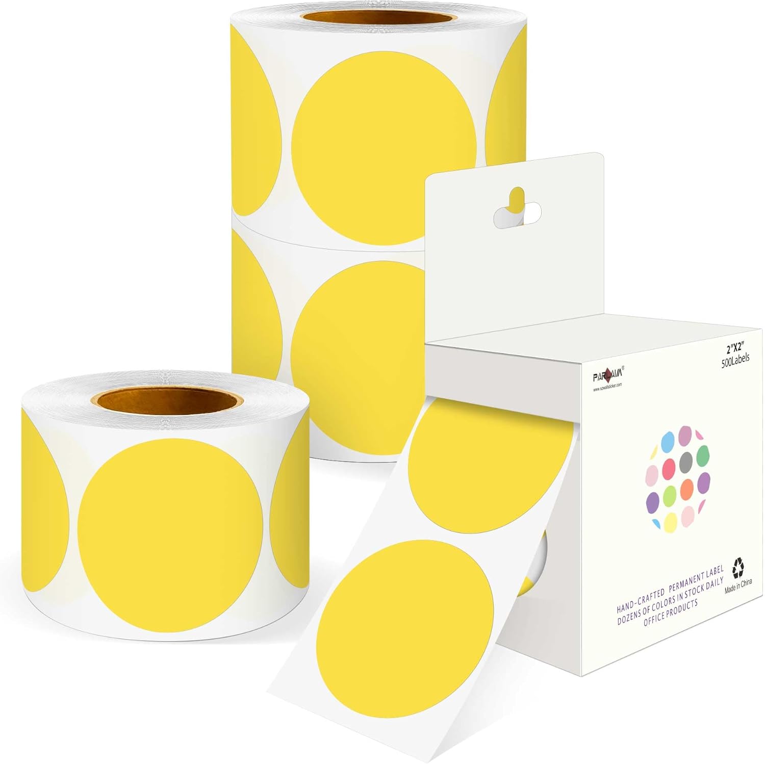 PARLAIM 2 inch Round Color-Code Dot Sticker Labels, 4 Rolls 2000 Adhesive Label Pack in Dispenser Box, Yellow