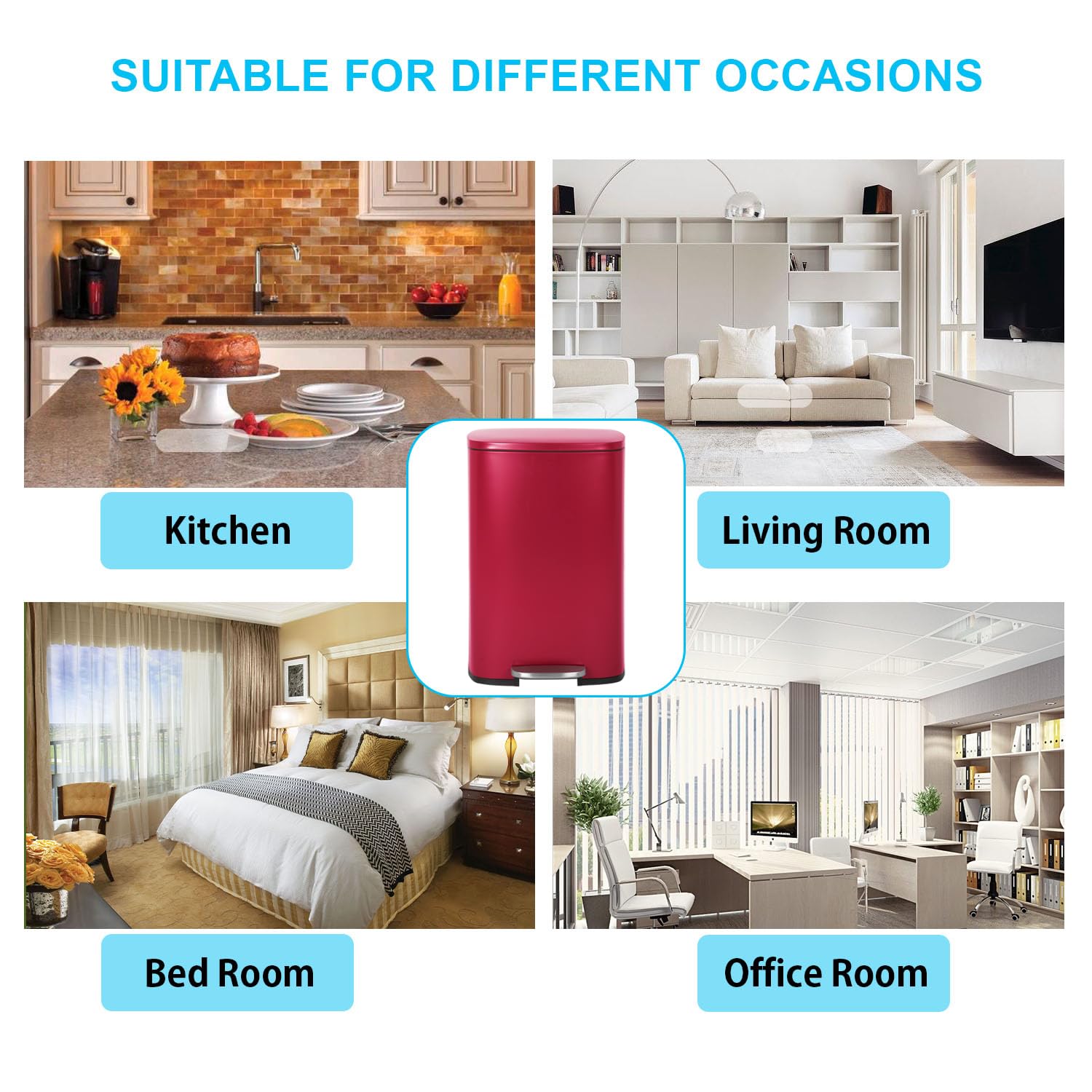 - Hand Free & Odor Control : Trash can with foot pedal allows you to dispose of trash without dirtying your hands or physically touching the trash can lid. The tight-fitting lid reduces odors, keeping your space fresh and the surrounding area smelling fresh and pleasant.