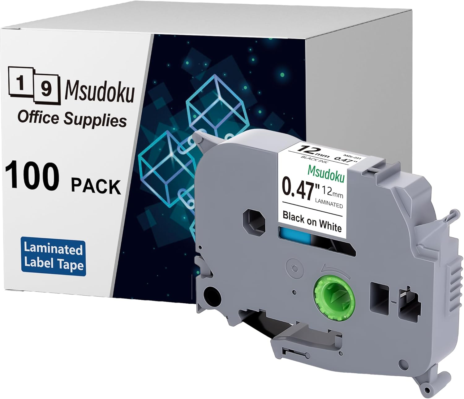 - Package Includes: 100-pack compatible with brother p touch label maker tape 12mm 0.47"black on white tape. Size: 1/2" (width) x 26.2 ft (length) Color: Black on White TZe TZ Tape