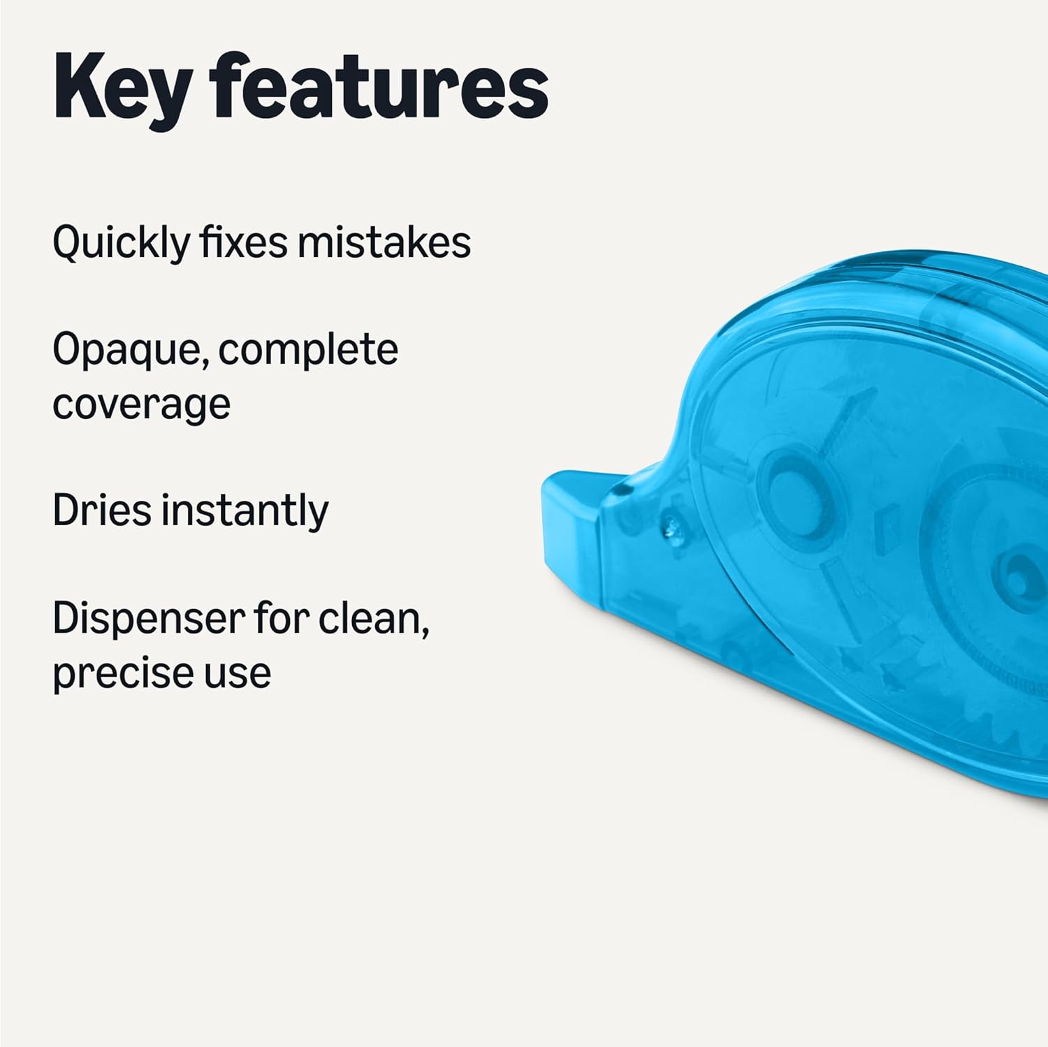 - Easy-to-use white-out tape dries instantly and includes a dispenser for precise, mess-free use