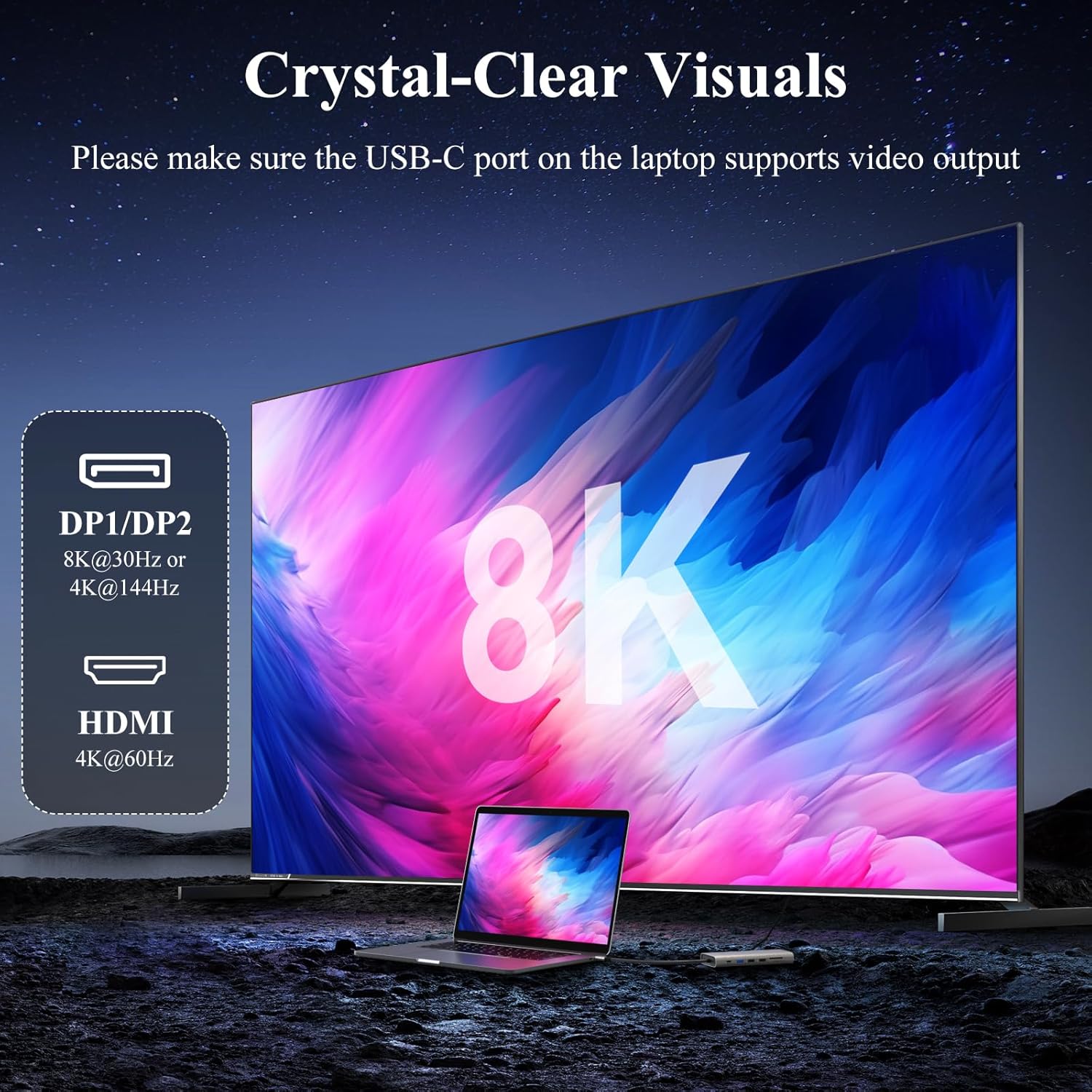 Minthouz USB C Docking Station,12-in-1 Laptop Docking Station Dual Monitor with Dual 8k DisplayPort+4k HDMI+10Gbps, 3 USB A/C, 100W PD, Ethernet, SD/TF, Audio, USB C Hub for MacBook/Dell/HP/Surface