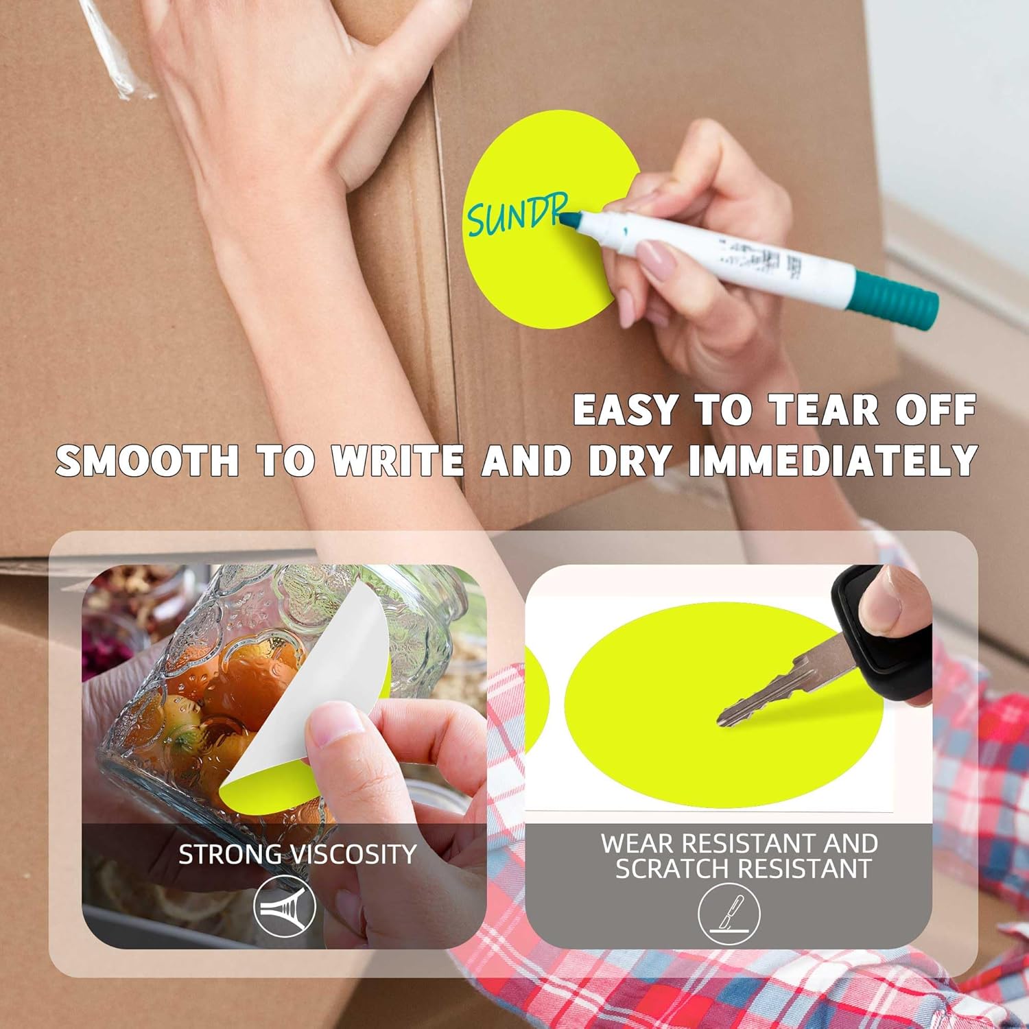 - 2000pcs coding adhesive labels 4 rolls. 3” diameter,Fluorescent Yellow Color-Code Dot Stickers.