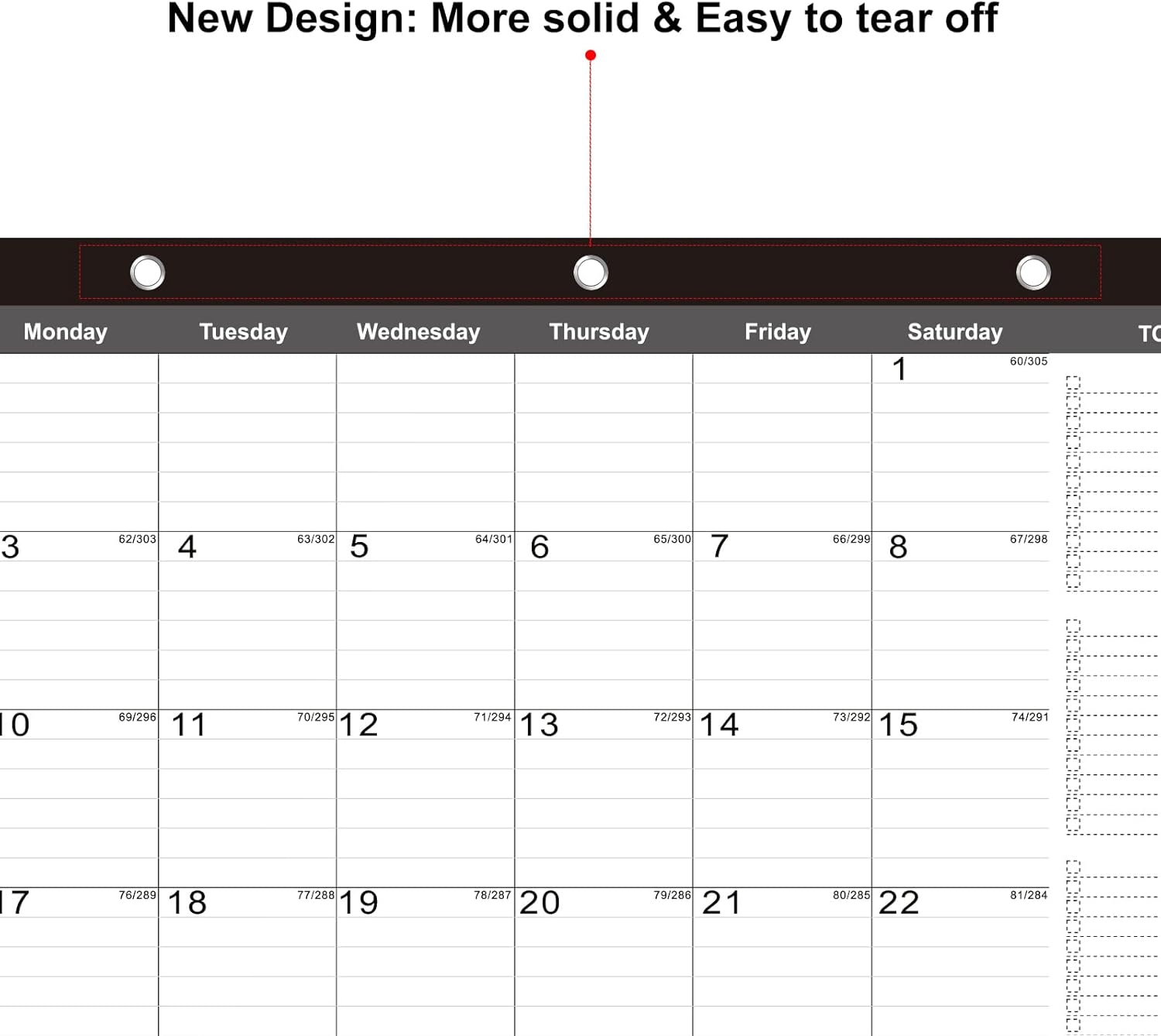 - Professional Calendar Design - Top binding has 3 eyelets to allow the calendar to be hung as a wall calendar, 2 corner protectors efficiently reduce dog-eared pages and keep pages flat on desk or wall. Also, it has durable backing creating a firm writing surface