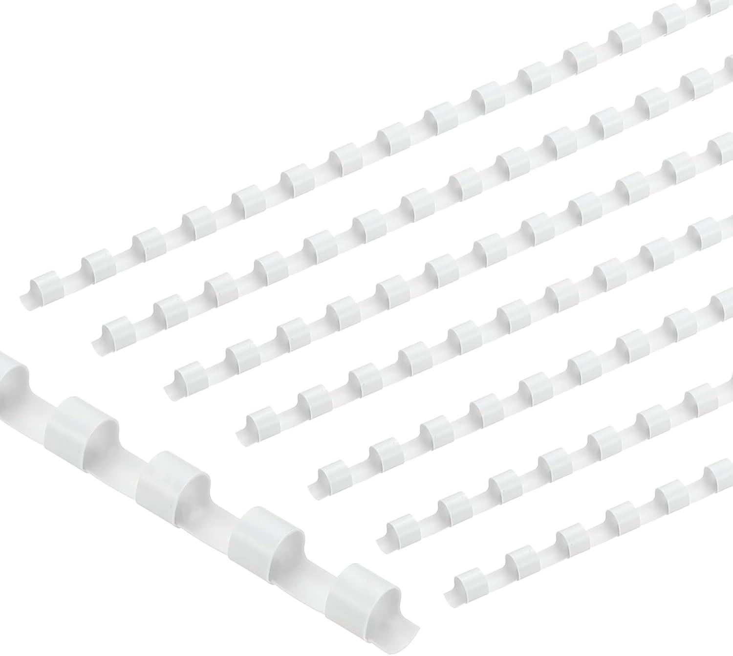 - Specification: Inner diameter: 6mm (1/4 Inch); Length: 300mm/11.8 Inch; Number of binding pages: 20; Material: plastic; Color: White; Packing List: 200 Pcs Plastic Binding Comb Spines