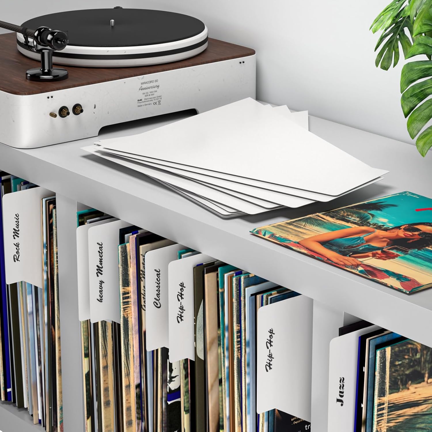 Facmogu 20PCS Vinyl Record Dividers, 12 Inches Reusable Index Card Dividers, Writable Blank DIY Album Vinyl Separators for LP DVD Record Organizer, Horizontal and Vertical Record Storage Card - White