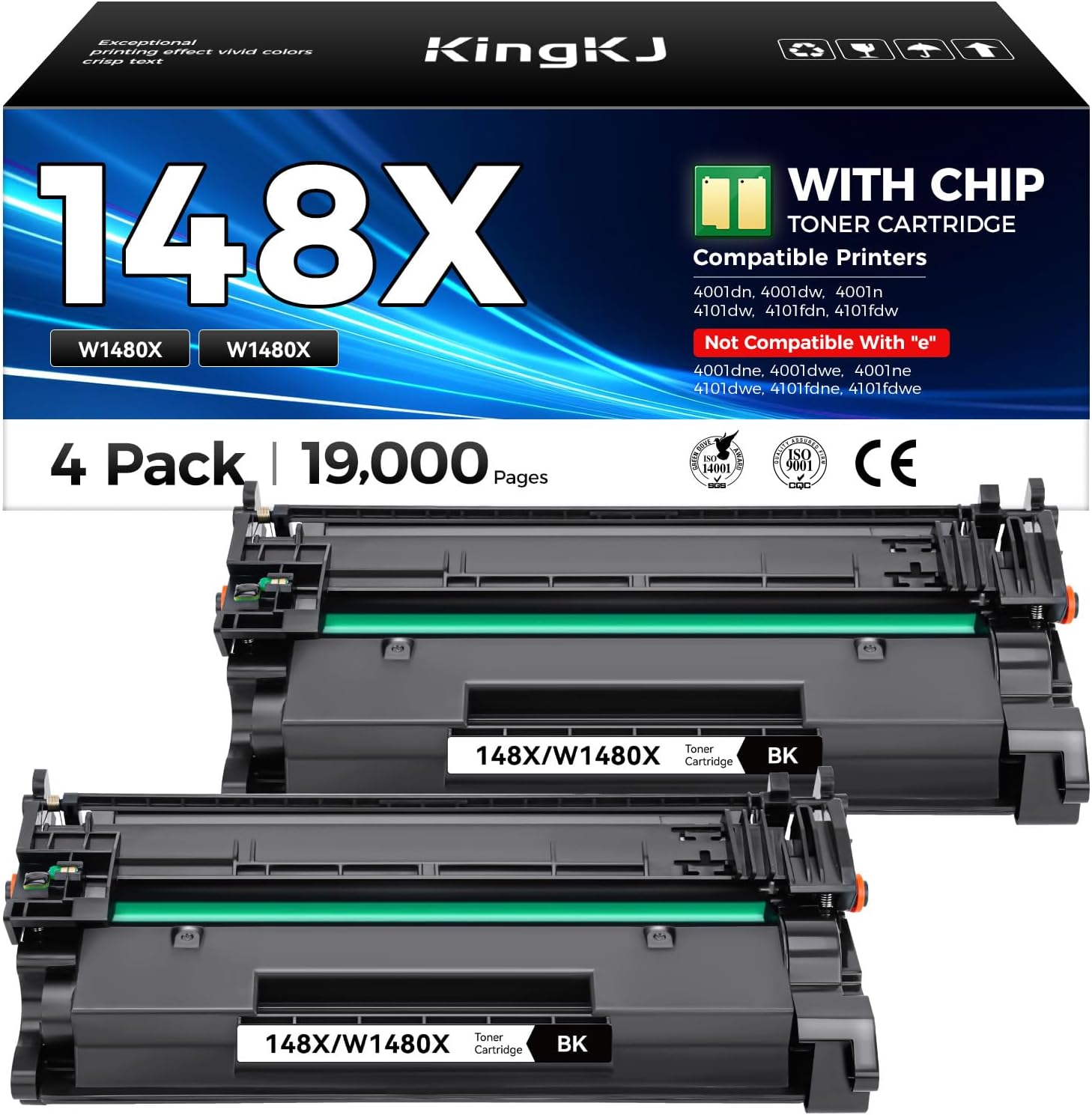 - Latest Chip Version: The KingKJ toner cartridge is equipped with the latest built-in chip, ensuring perfect compatibility between each toner cartridge and the printer. When using the KingKJ toner cartridge to print for your printer, you will receive clear text and sharp images. All KingKJ toner cartridges have undergone strict quality testing to ensure stability and reliability, and have obtained ISO9001 certification. In addition, our product team offers 2-year warranty, 24-hour customer service, and replacement services for defective products.