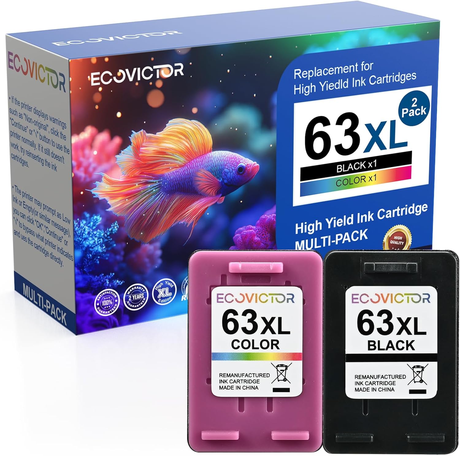 - Eco-Friendly Printing Excellence: All Eco Victor remanufactured ink cartridges 63 are made from durable, eco-friendly materials. They offer higher capacity and premium ink quality through rigorous cleaning, refurbishing, and refilling. Certified Climate Pledge Friendly and meeting FSC standards, these cartridges support sustainability. The 63 black ink cartridge prints sharp, clear black text for your documents, and the 63 color ink cartridge produces vibrant, natural color photos.