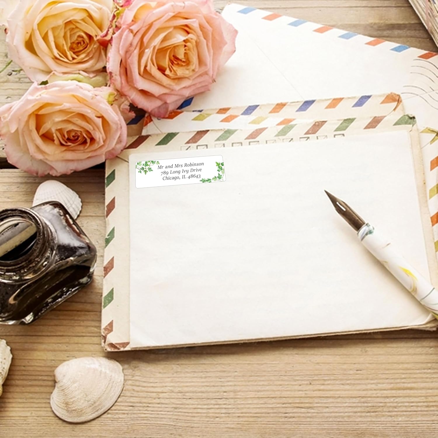 Personalized Return Address Labels Greenery - High Gloss Custom Mailing Labels on Sheets - Self-Adhesive Return Stickers for Envelopes with Crisp Printing Design (50-1000)