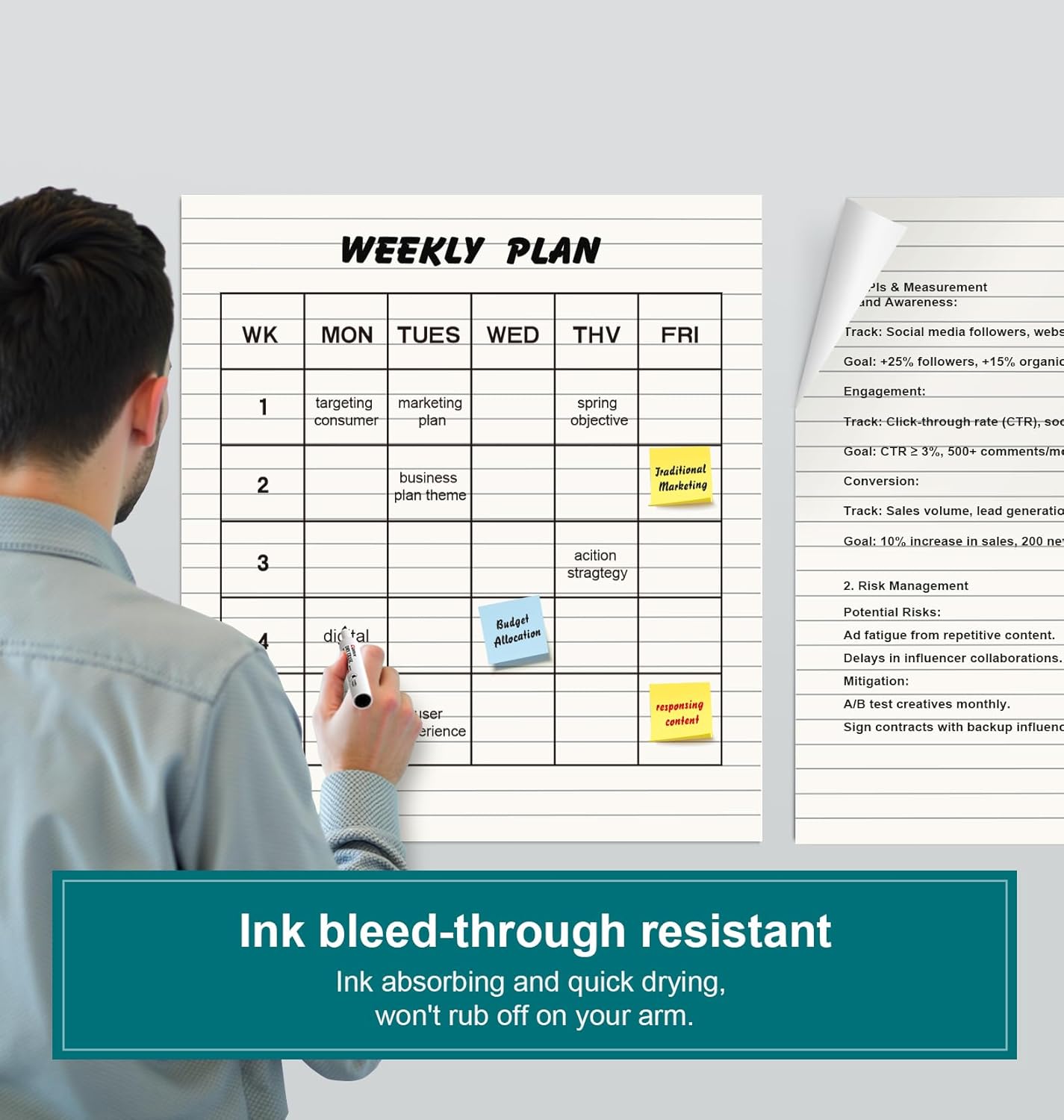 - 【Ink Bleed-Through Resistance】The large sticky notes paper can resist bleed-through from markers or pens, ensuring that your notes and ideas stay clear and easy to read
