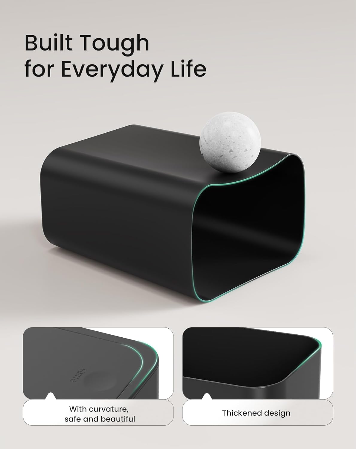- Designer Minimalist Aesthetic: Our garbage can with lid features a fine finish combined with smooth curved edges that carry a simple, modern, versatile style that complements many styles of home, bathrooms or offices.