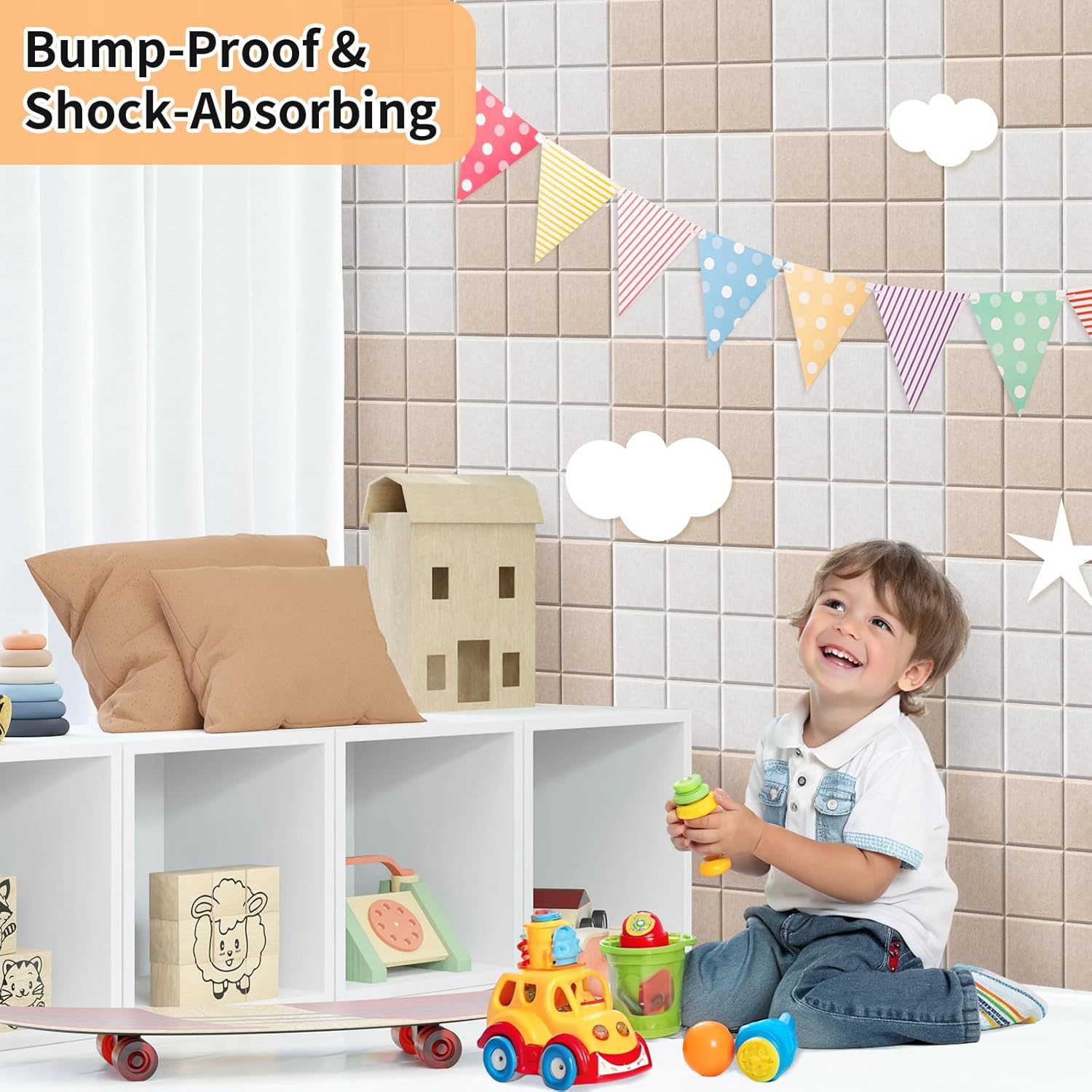 - [Safe & Eco-Friendly Material]: Everything included: 12 tiles + 50 adhesive tabs + 35 tacks. Crafted with 80% recycled materials and OEKO-TEX Class IV certified felt. It is moisture-proof and not easy to change color or mold, eco-friendly and recyclable material ensures safety and peace of mind.