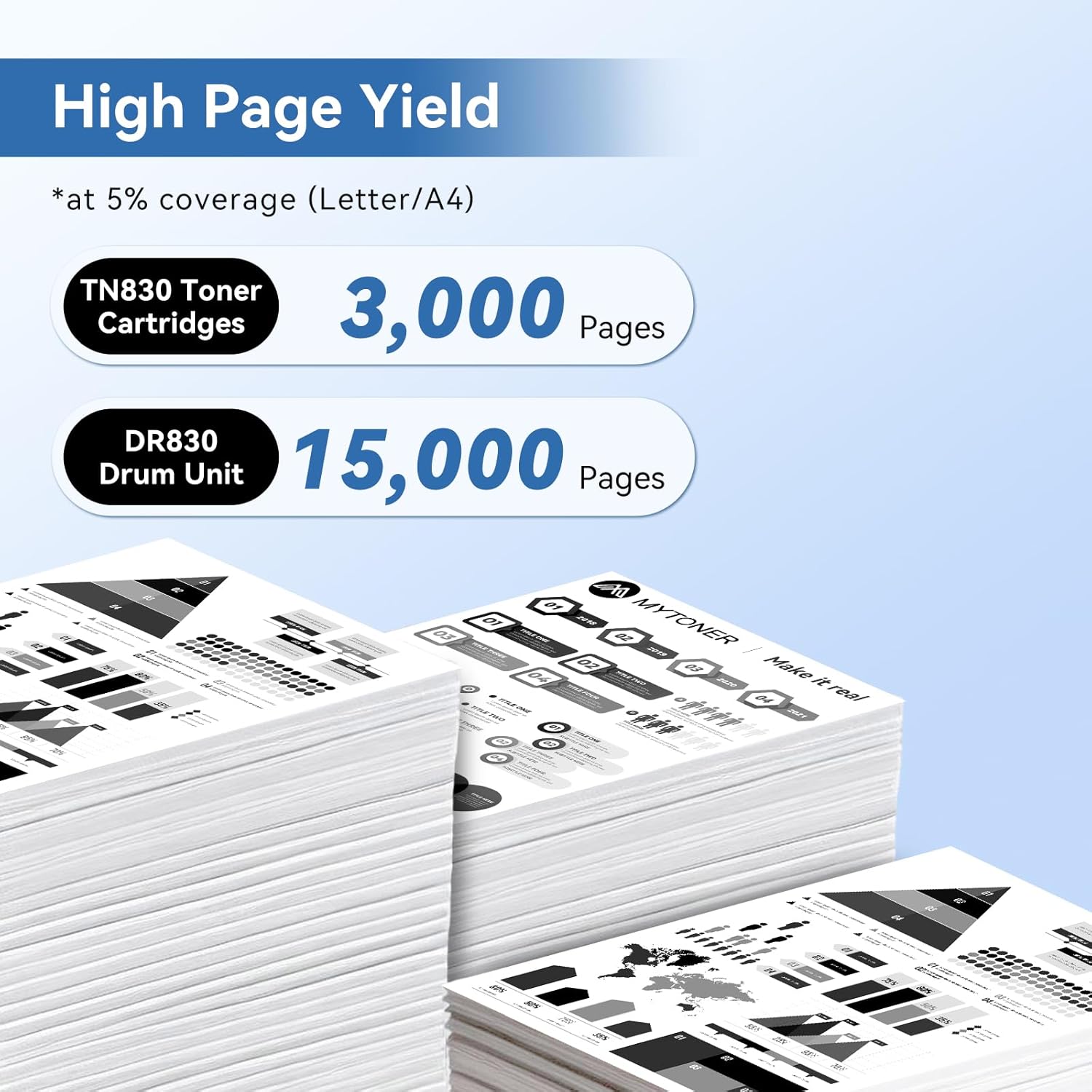 - 【Replacment Model】: MYTONER TN830XL TN830 Toner and DR830 Drum Unit Compatible for Brother TN830XL Toner TN830 TN-830 TN830XL Black High Yield Toner DR830 DR-830 Drum Unit for Printer