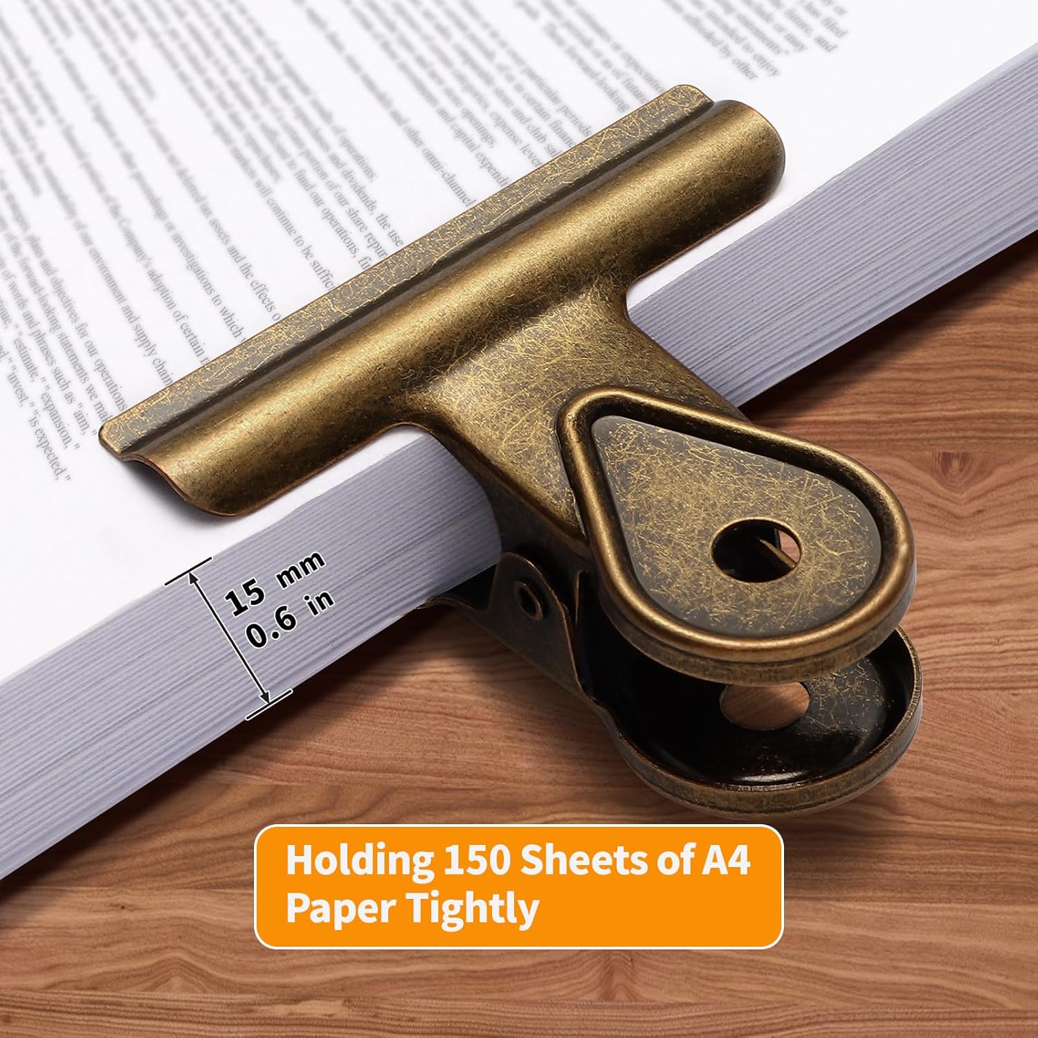 SIAMESE Bulldog Clips, 8 Pcs Binder Clips for Office & Kitchen, Multi-Purpose Binder and Food Bag Clamps for Sealing, Storage, Hanging (Bronze)