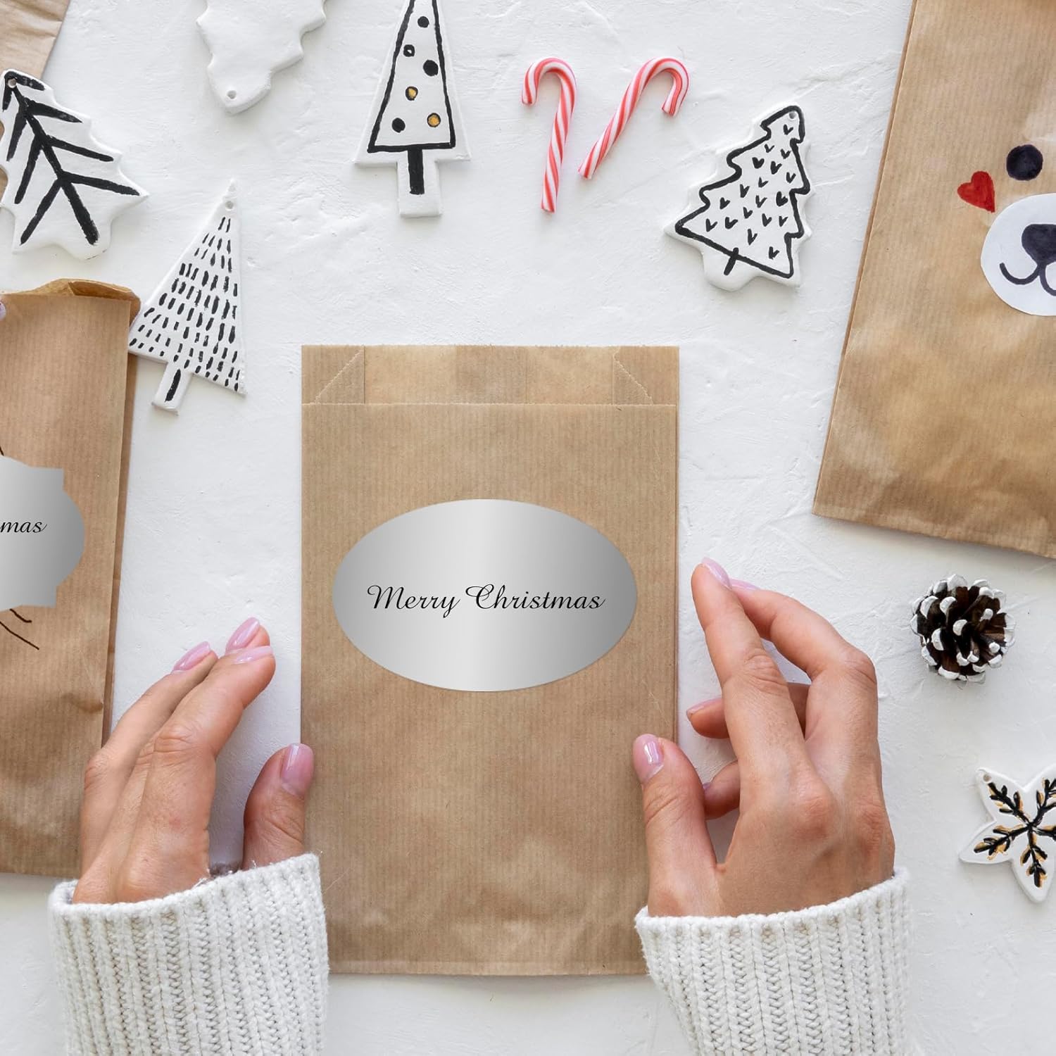 Silver Labels Stickers, 250 PCS 3" x 2" Fancy Shape Stickers Labels for Storage Box or Food Jars Holiday Present Stickers Christmas Gift Tags Stickers