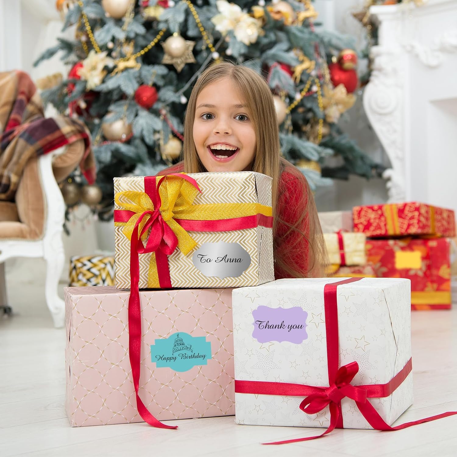 - 【Widely Usage】Just need to peel off the sticker, write words and stick them where you want. With different color paper element, these sticker labels can not only be applied as Christmas gift tags, but also for wedding, birthday, mailing labels, name tags, etc.