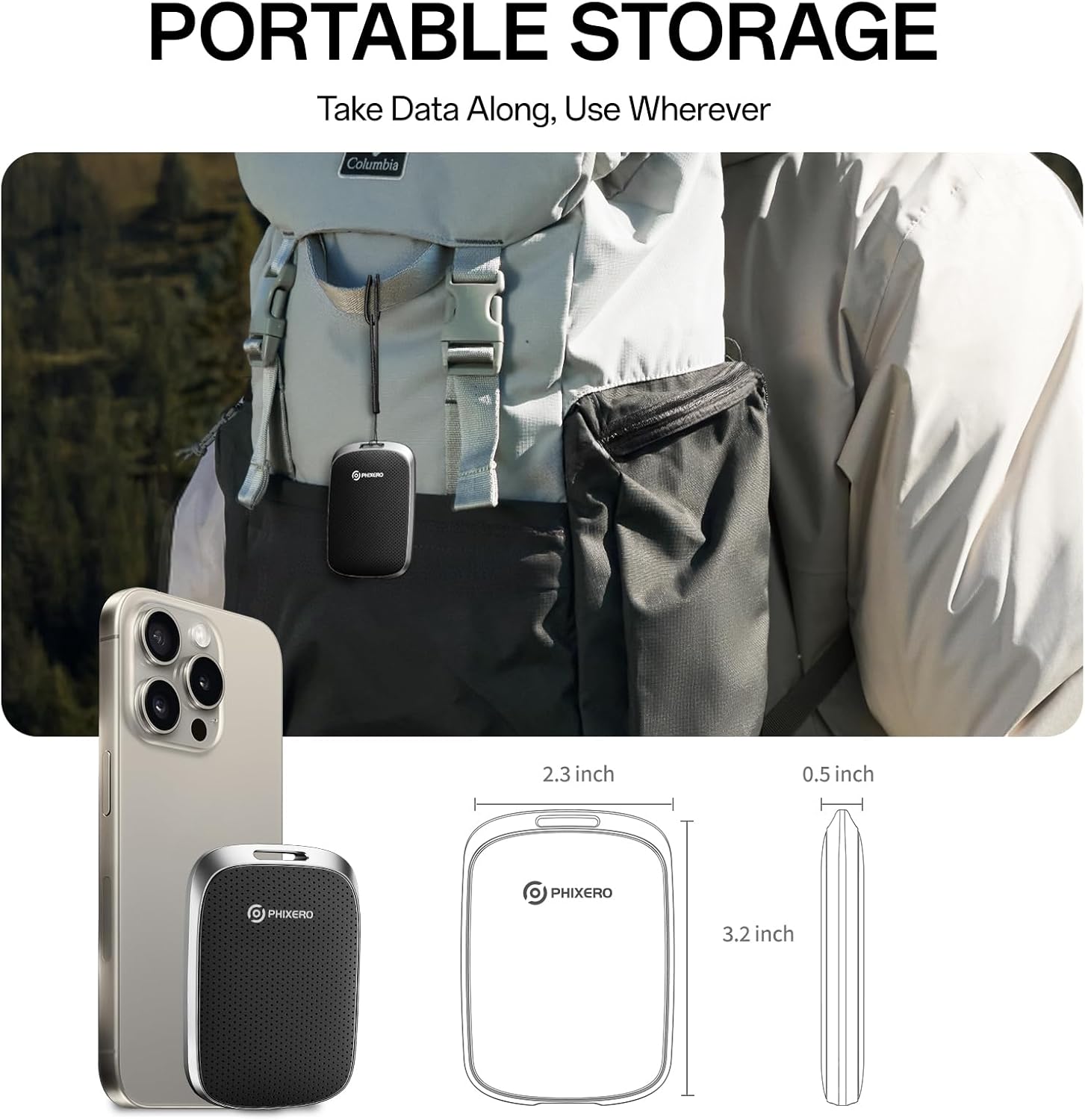 - 【Sturdy and Portable】PHIXERO P5PLUS External Solid State Drive adopts anti-drop, anti-vibration, anti-dust, and solid one-piece aluminum alloy frame with high strength and durability, making this portable hard drive keep the drive almost silent when running. The mini design makes it very convenient for you to carry and use. It can be easily put into a briefcase or a pocket of clothes.