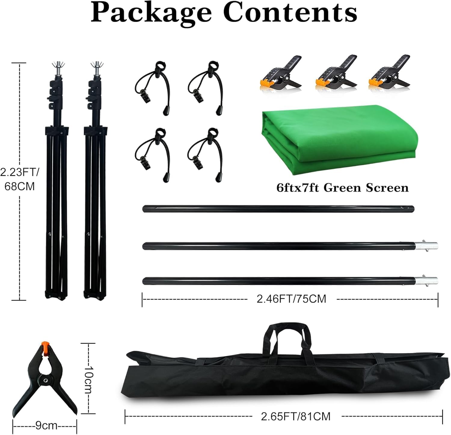- [Versatile 2-in-1 Kit] The 2-in-1 green backdrop stand kit includes a portable dual rod stand measuring 6.5x6.5 ft and a high-quality 6x7-ft polyester green backdrop. Additionally, it comes with 3 Spring Clamps, specifically designed to meet various shooting needs, including video streaming, portrait photography, wall decoration, and parties, making it perfect for creatives and professional photographers
