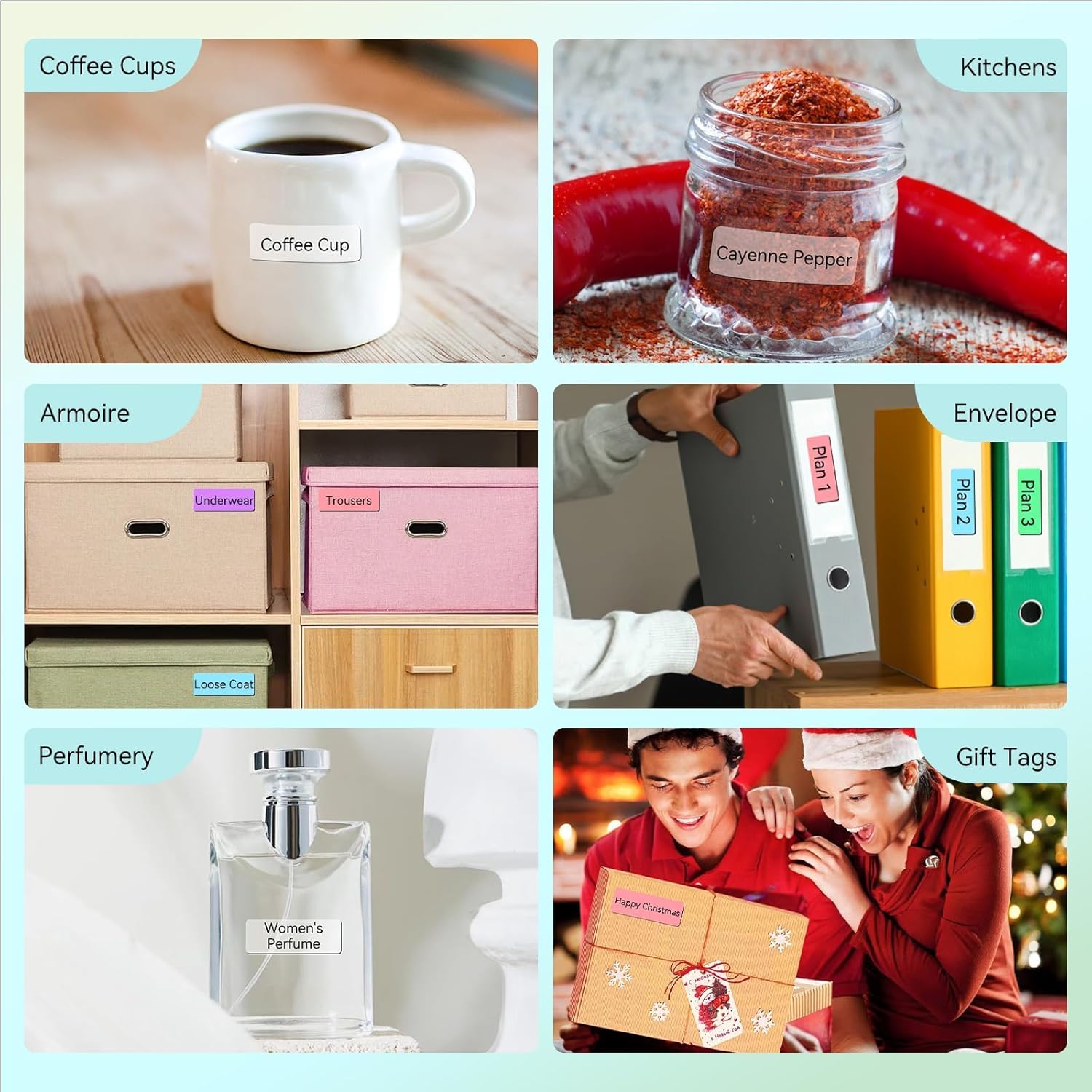 - Label Maker Tape — [Tips:The corners of the labels are square, not rounded]You could get 10 rolls of labels in total, with sizes 15x40mm(0.59x1.57 in), 165 labels/roll, and 1650pcs in total. It is clear 2 rolls, blue 2 rolls, purple 2 rolls, green 2 rolls, and pink 2 rolls.