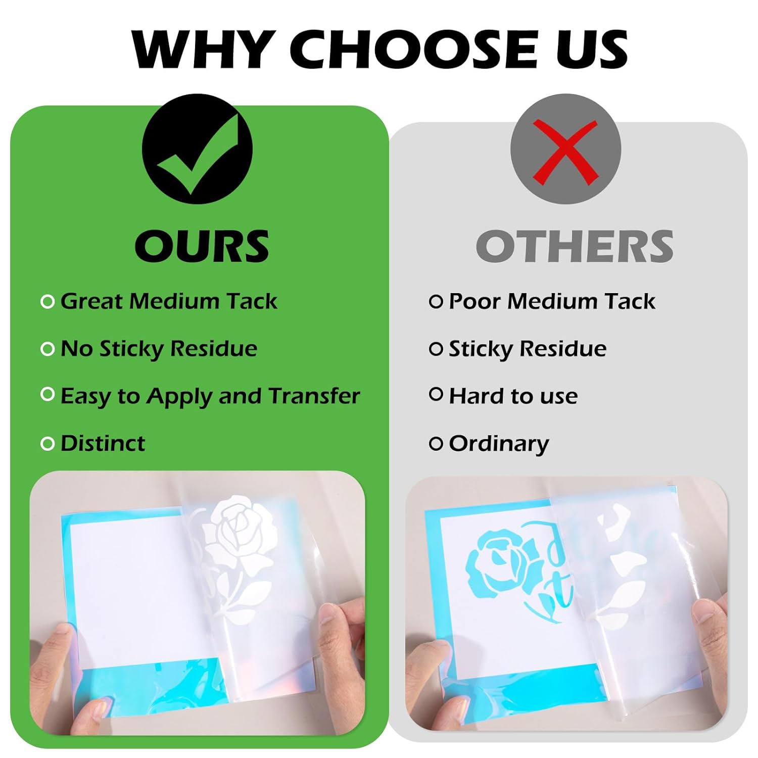- No Sticky Residue: This vinyl transfer tape is designed to not leave any adhesive residue on the vinyl, which means your final product will look clean and professional without any unwanted stickiness