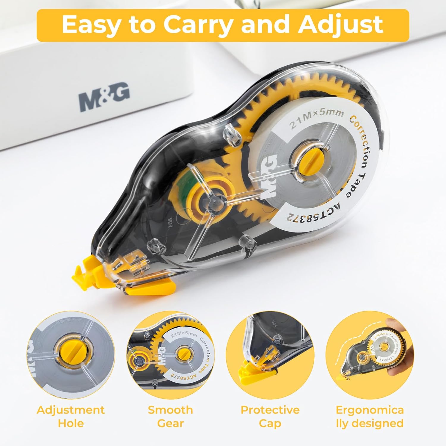 - Compact & Ergonomic Design: This correction tape features an ergonomic design. Its shape is carefully crafted to fit comfortably in your hand, ensuring a natural and easy grip, reducing hand fatigue even during extended use.