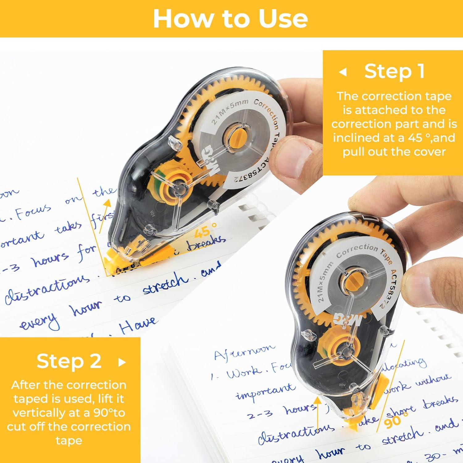 - Easy To Use:Just hold the correction tape at a 45 degree angle to the paper surface, press lightly and drag the tape back to completely cover the surface to be modified.