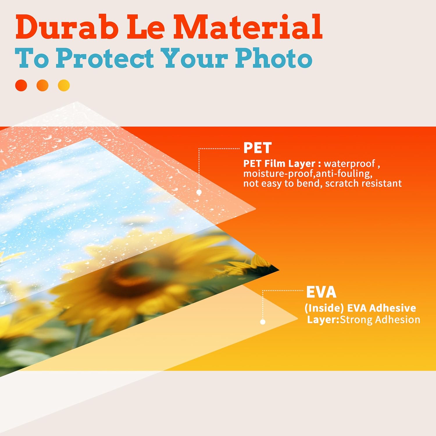 - Premium Material:We provide high quality thermal laminating sheets.Ideal for protecting items from damage Delivers a clear,professional and photo-safe finish,Ultra clear finish to let important information show through
