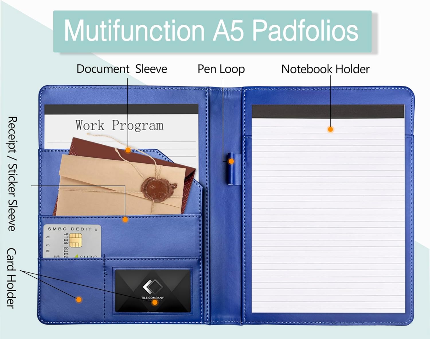 - 【Multifunctional Document Organizer】The leather portfolio is compact, 2 * card pocket/1 * resume and document pouch on the left side, 1 * refillable note pad and pen holder on the right side. With the assistance of mini binder, you can easily organize business paper, letters, notes, envelopes, cards, and other stuff, make your work more efficient.