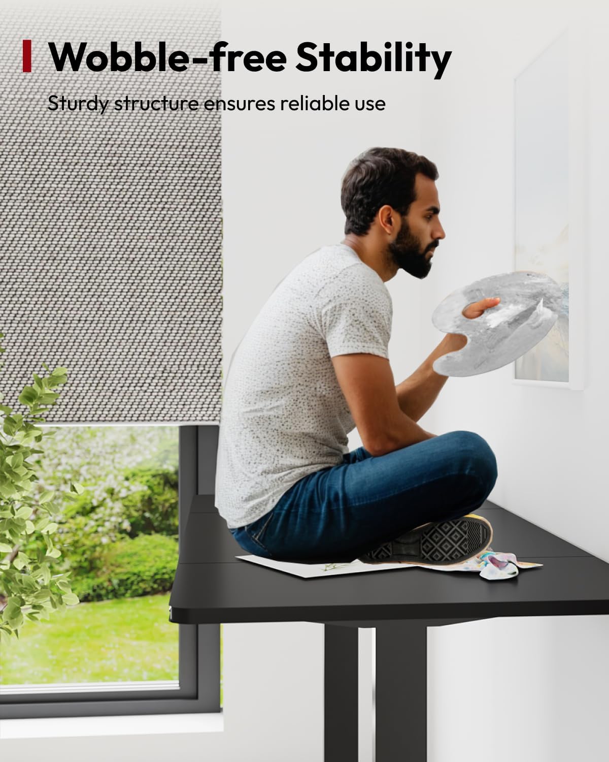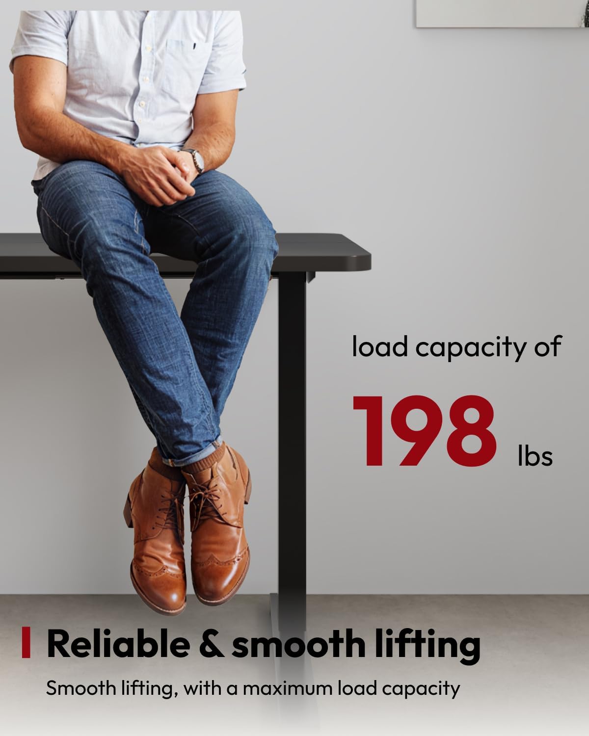 - Ergonomic Workspace: The spacious 71” x 32” adjustable desktop offers a roomy setup that promotes an ergonomic workspace.