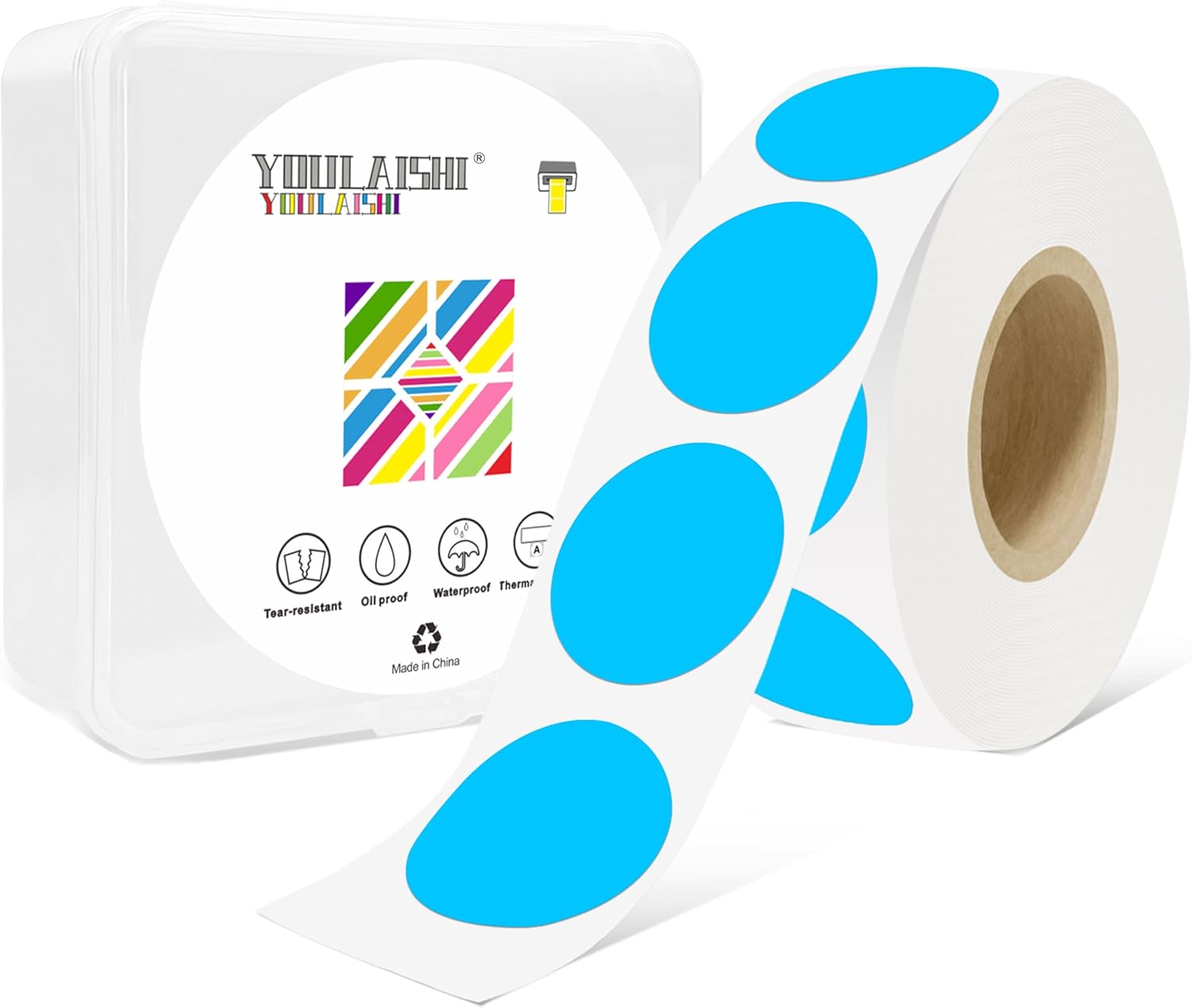 - What You Will Get: Each roll contains 1000 pieces of 1 inch round thermal labels. These color-coding sticker dots are easy to peel off and apply to various surfaces. Sky blue color round stickers are suitable for home sorting, office organization, business displays, etc