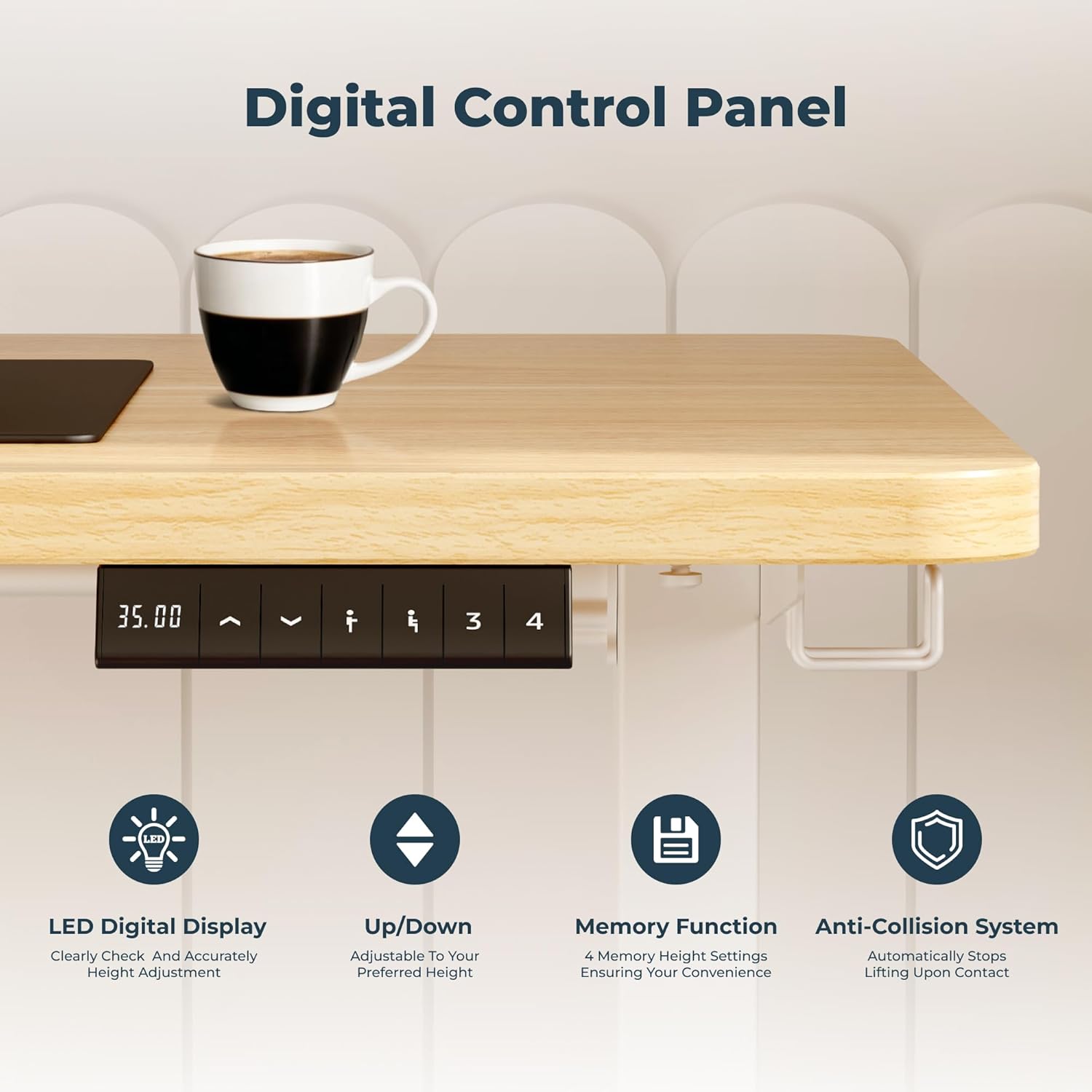 - Adaptable Memory Mechanism: Our sit stand desk boasts a memory height system with the controller that can be pre-set to 4 different heights, giving you the convenience to switch to your preferred height settings with just a click.