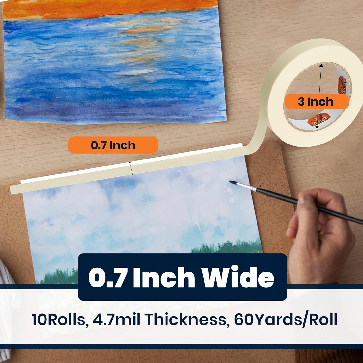 - ONE PACK, 60 ROLLS: Our general purpose beige white paint tape set comes with 60 rolls. The thickness of masking tape is 4.7mil, each roll measures 0.7 inches in width and 60 yards in length. Long enough for your different needs. Great for crafts, arts, DIY projects, organizing, decorating etc.