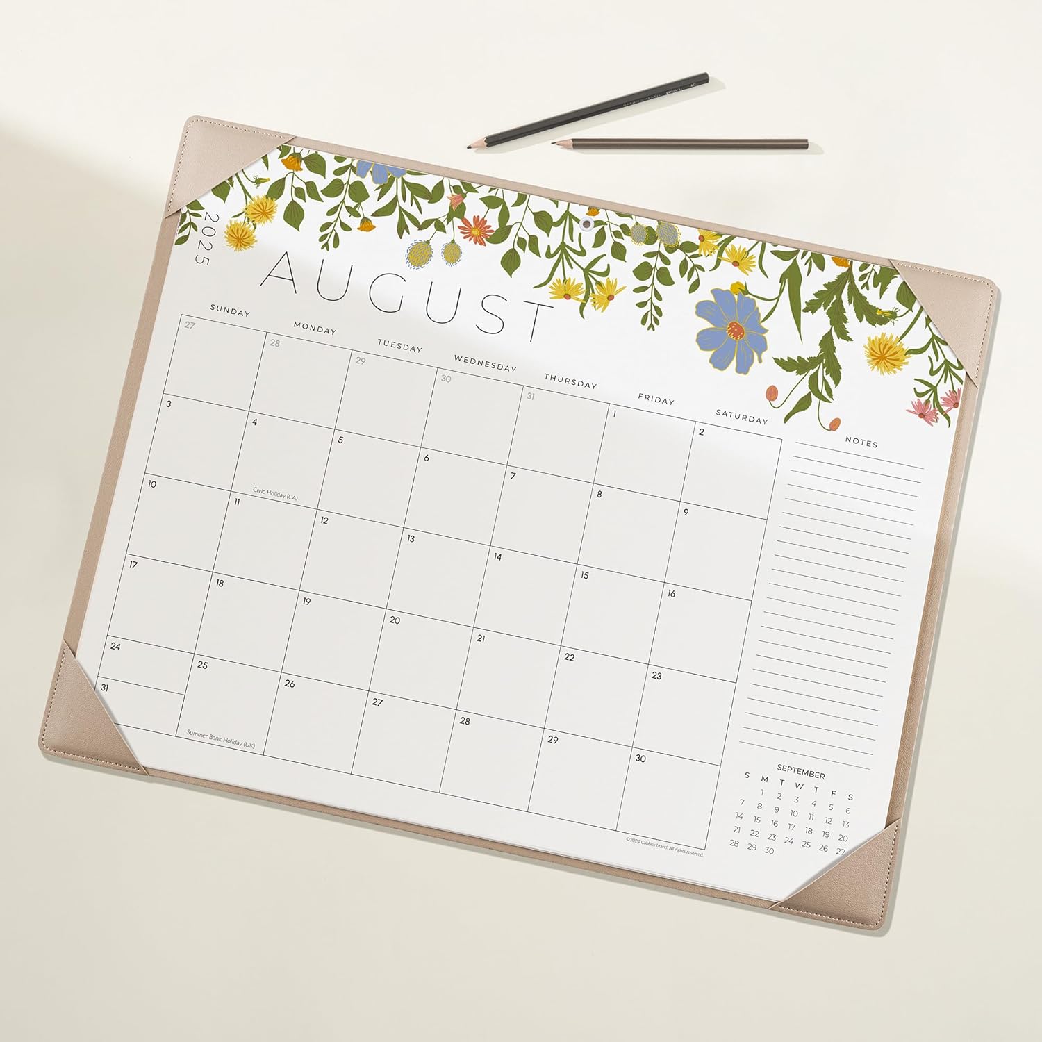- Large Size with Pad - Desk calendar 2025 comes with Desktop Mat. The size of the large desk calendar is 22" x 17".