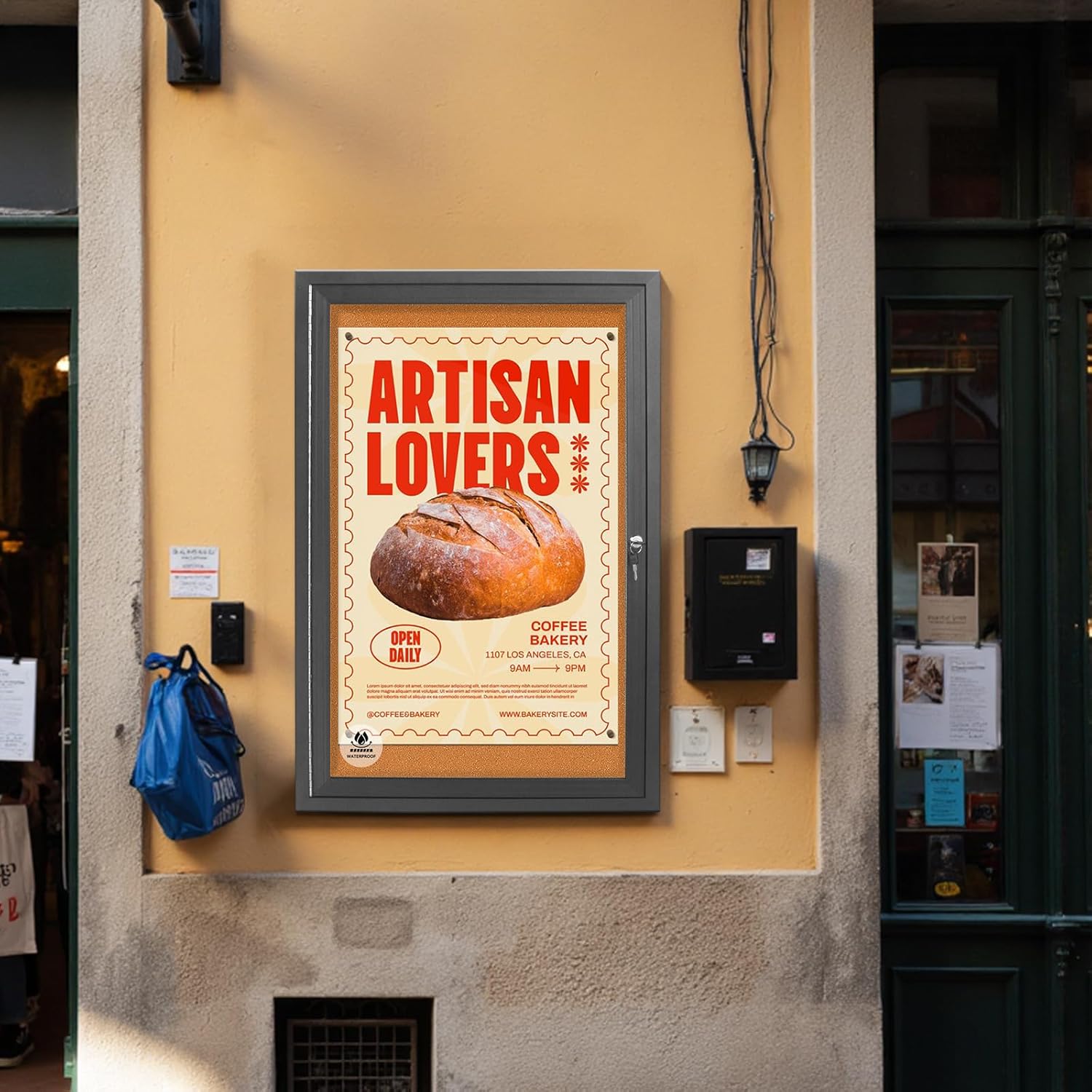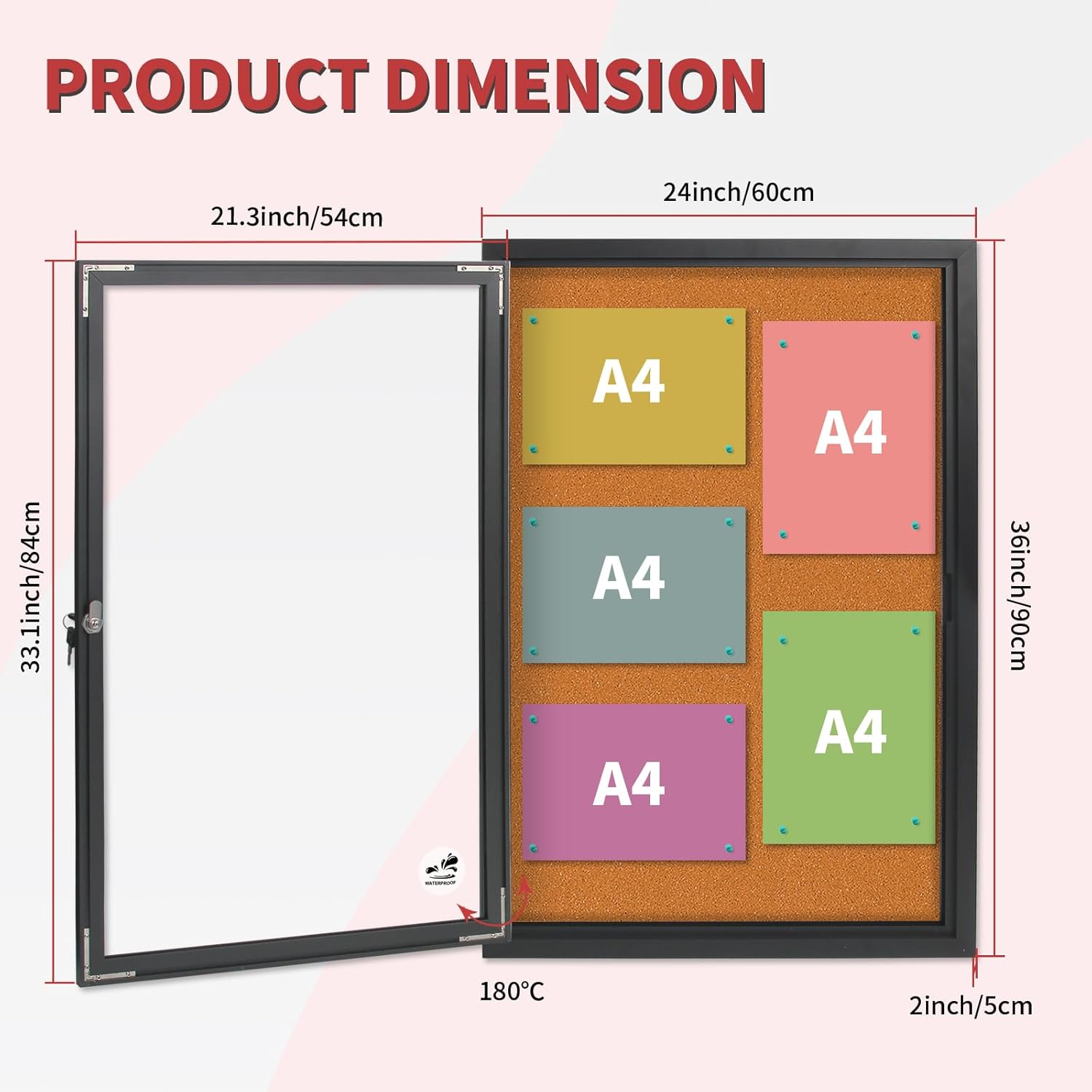 - š Spacious 36x24in Outdoor Display Case: Ample space for posters, certificates, and calendars. Mounts vertically/horizontally at entrances or walls.
