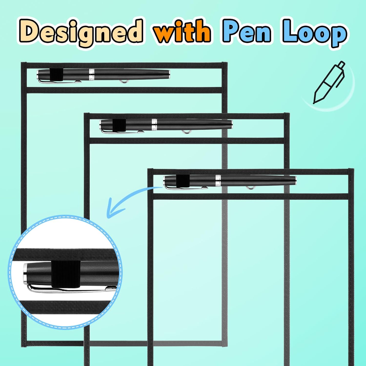 - Pre-drilled hole convenient suspension, one pen loop is on the top of dry erase pocket sleeves. Attention: we don't provide rings.