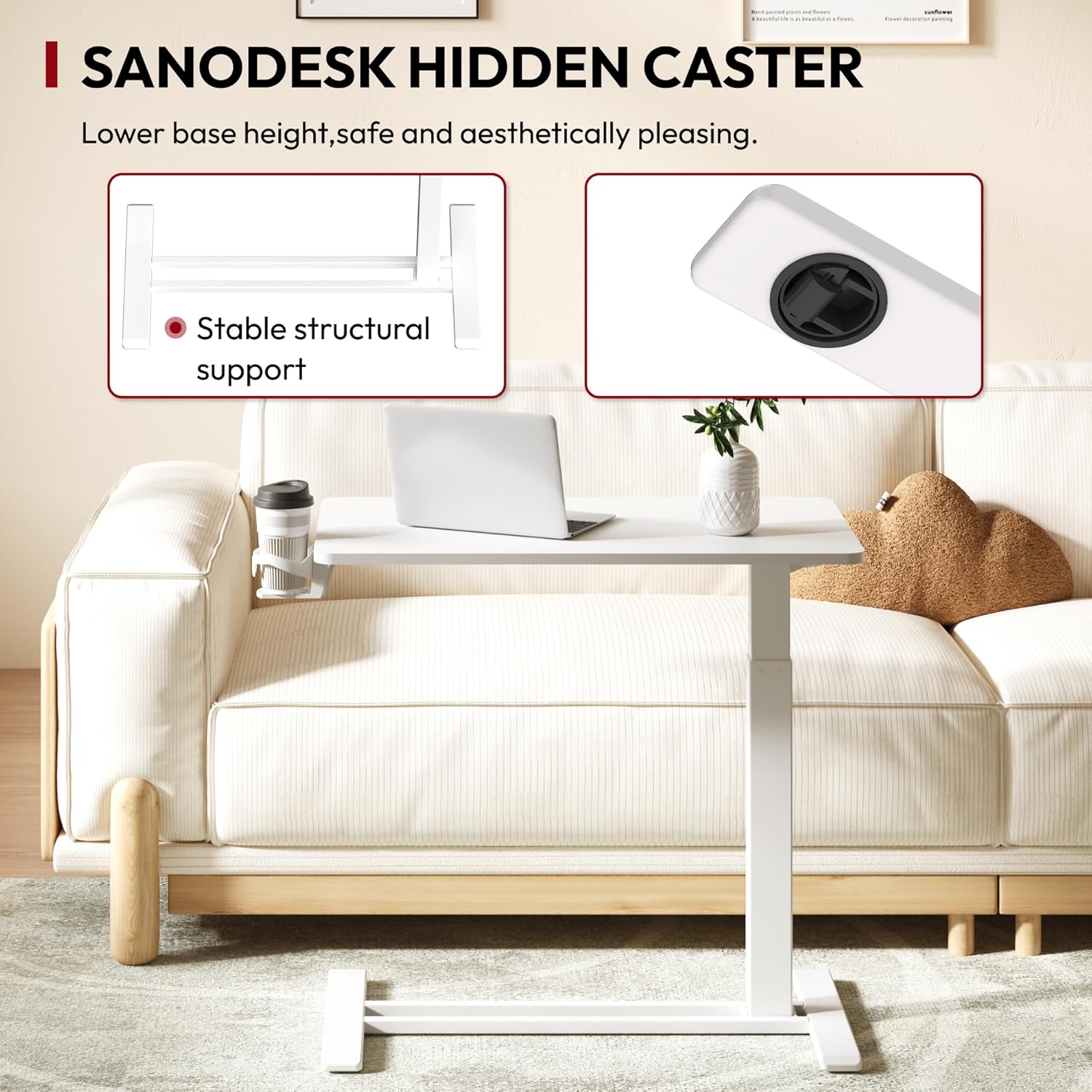 SANODESK Mobile Standing Desk with Hidden Wheels,Pneumatic Laptop Desk Rolling Computer Cart Movable Height Adjustable Small Sit Stand Desk for Home Office(31.5" W x 15.7" D,White)