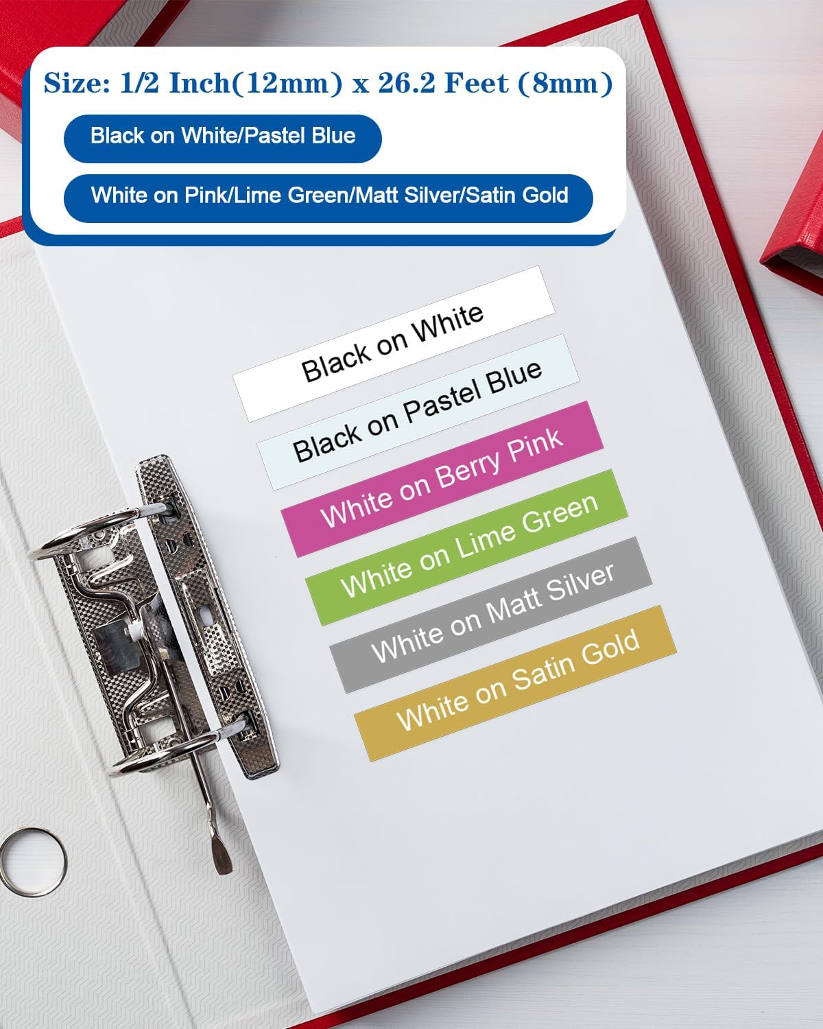 - Package Information: 6-Pack compatible for brother p touch label tape TZe TZ tape 12mm 0.47 laminated colored, Size: 12mm (1/2'') x 8m (26.2 feet) per label tape