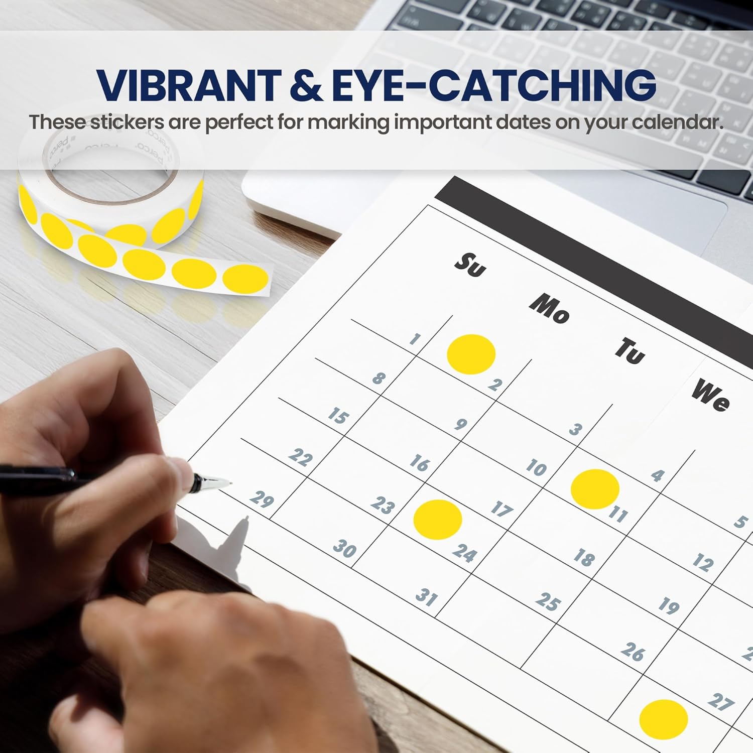 Perco Yellow 1-Inch Round Circle Dot Sticker Labels with Removable Adhesive – 1,000 Labels per Roll – Versatile, Vibrant Colors, Reliable Hold, No Residue, Perforated for Convenient Use – Made in USA
