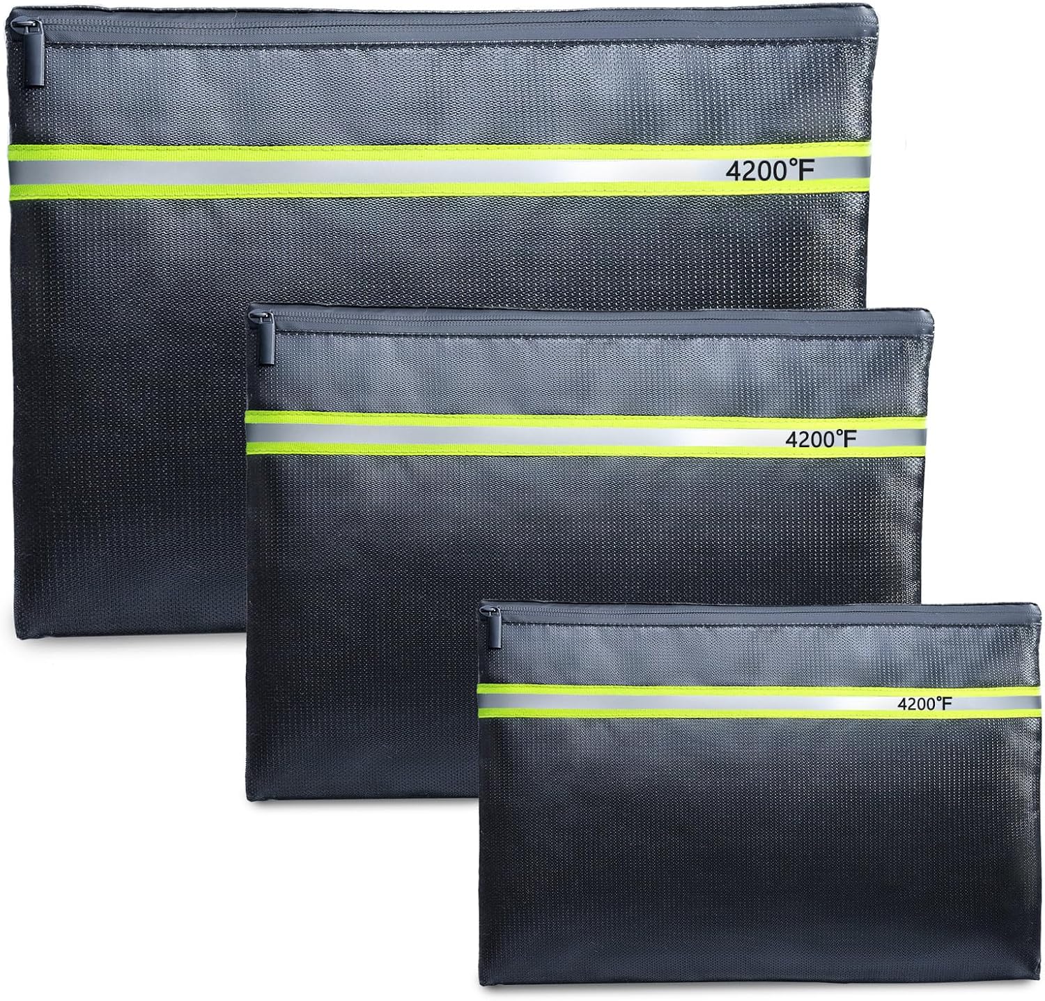 Fireproof Document Bag – 3 Pack (15" x 11", 13" x 9.7", 10.5" x 8") Fireproof & Water- proof Document Organizer | Document Holder with Zipper Secure for Cash, Passports, Check& More
