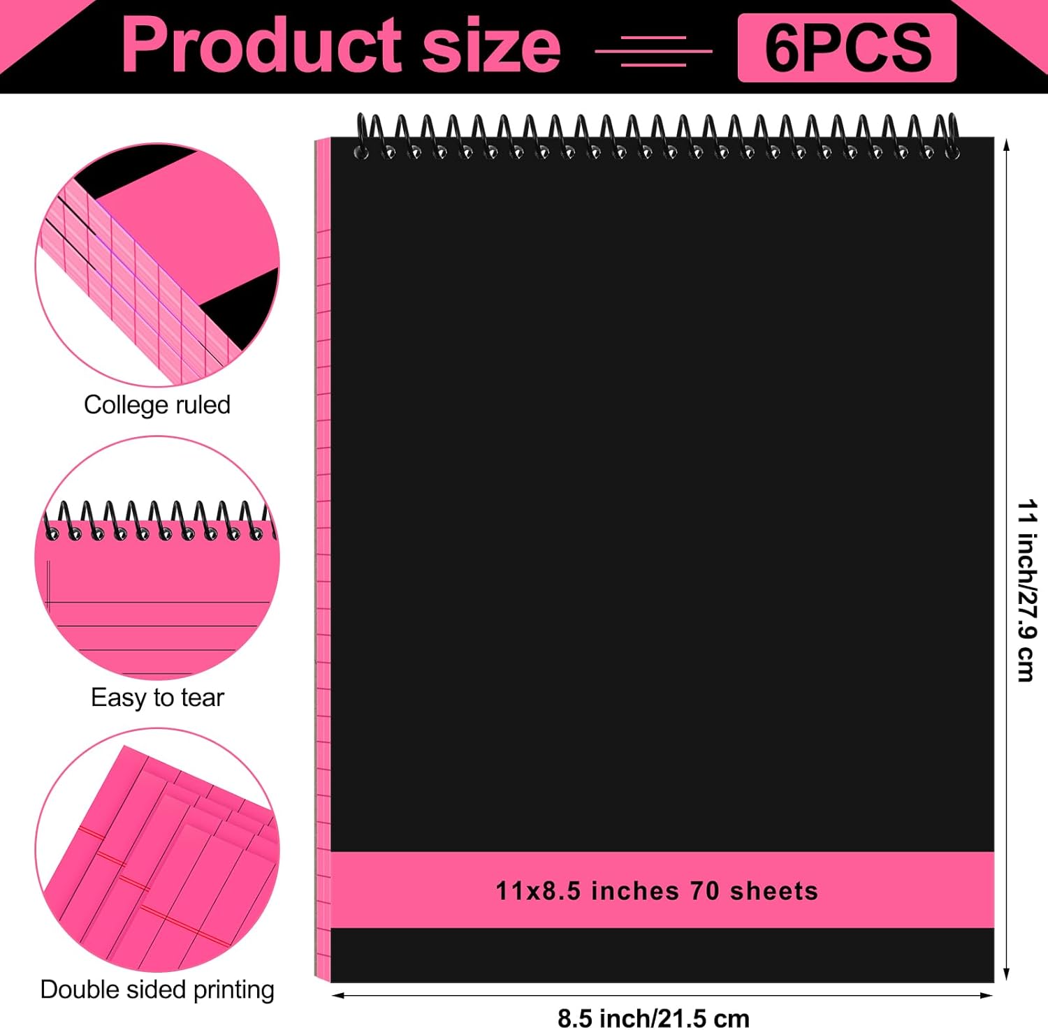 6 Pcs Legal Pad Top Spiral Bound Notebook 70 Sheets Wirebound Notepad Double Sided Ruled Memo Steno Pad with Stiff Back Cover for Business(8.5 x 11 Inches,No Holes,Bright Colors)