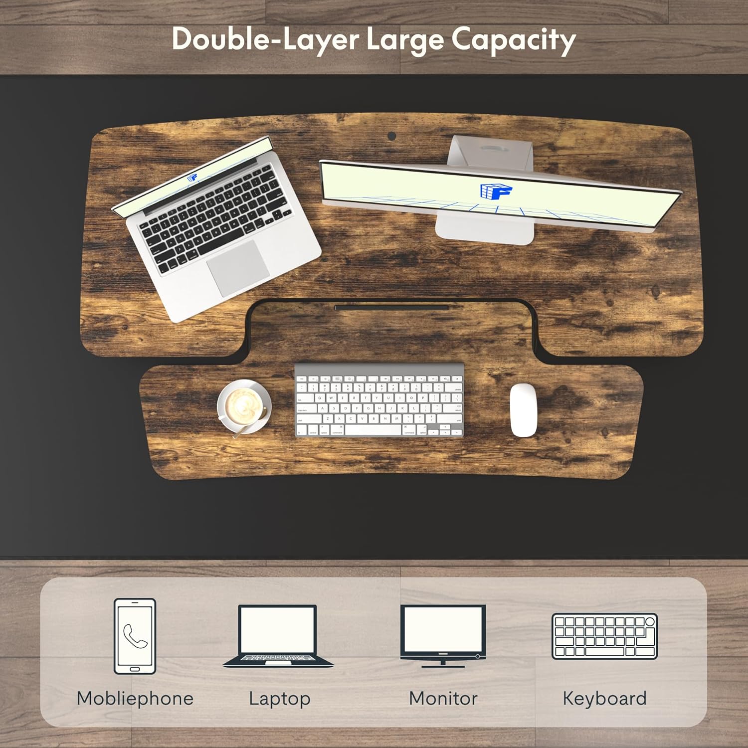 FLXISPOT 40in Standing Desk Converter, Height Adjustable Riser, Manual Lift with Gas Spring Monitor and Laptop Workstation, Rustic Color