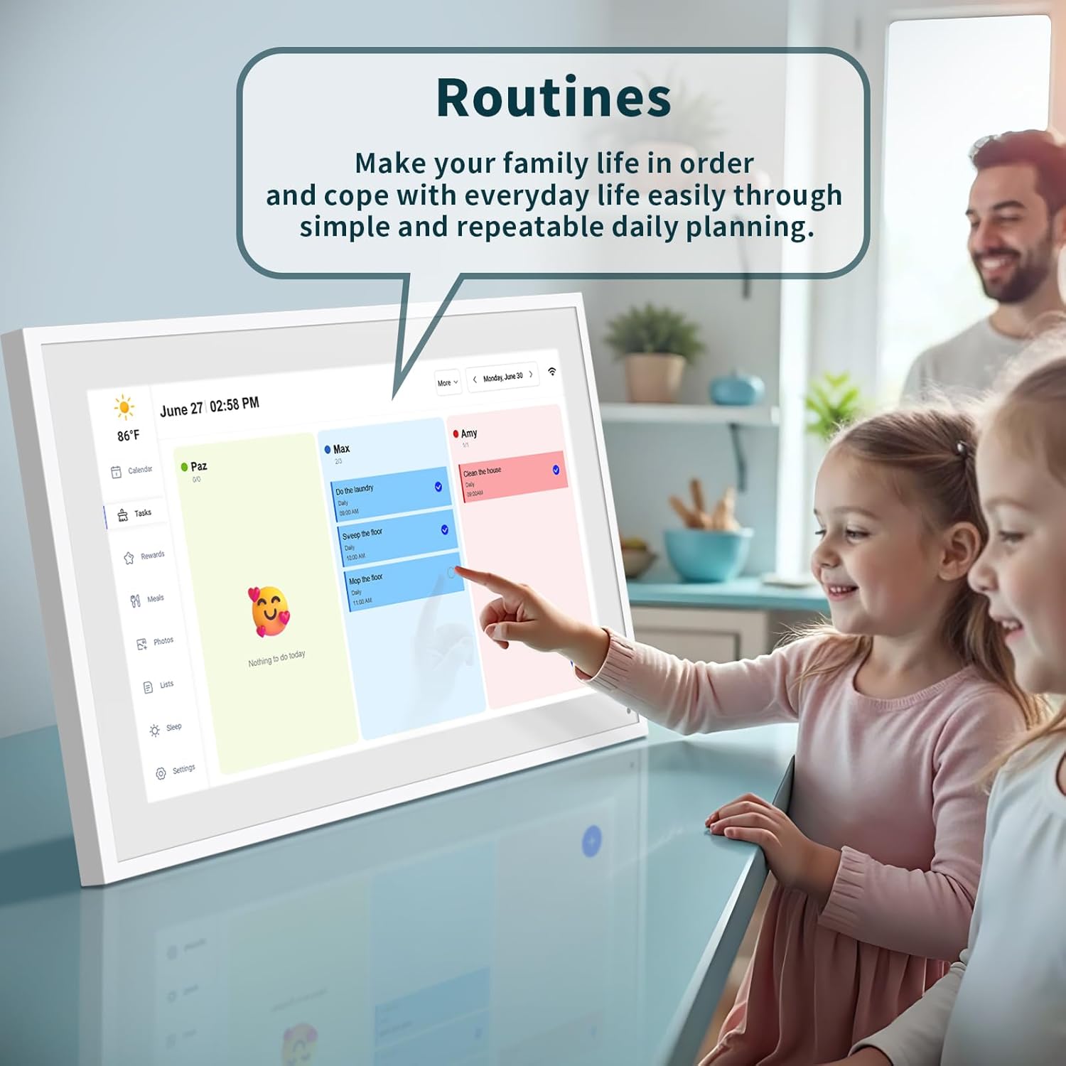 - 【2025 Newest Online Calendar】This innovative smart family calendar combines the functionalities of a digital calendar and planner with the added benefit of a digital calendar. It features a monthly, daily, and weekly view and includes chores and to-do lists. The intuitive touchscreen interface simplifies scheduling and viewing of each family member’s tasks and plans, facilitating easy organization and management of daily activities.