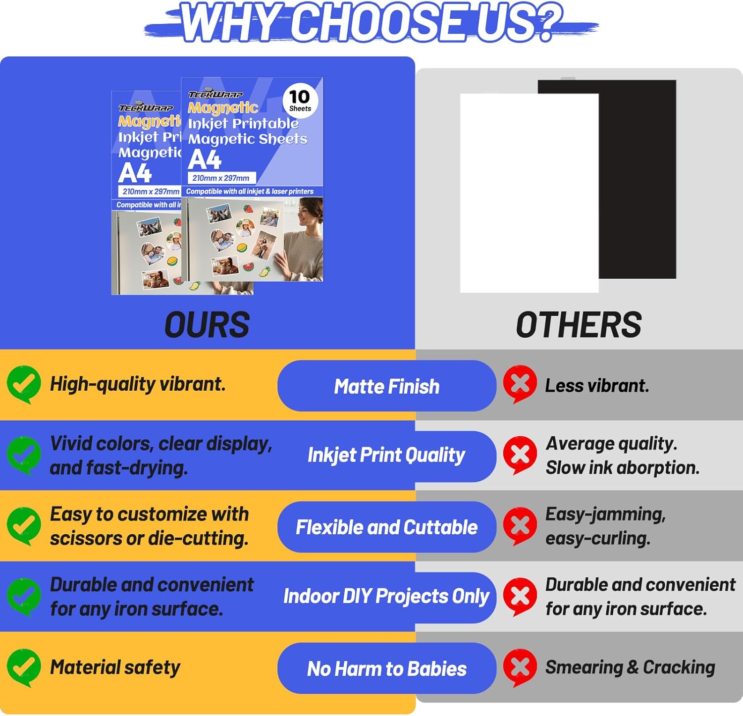 TECKWRAP Printable Magnetic Sheets for Inkjet Printer - 8.26" x 11.69" A4 Size 10 Sheets/Pack - Matte Printable Magnetic Paper for DIY Crafts, Easy to Cut, Non Adhesive for Photo Fridge Magnets