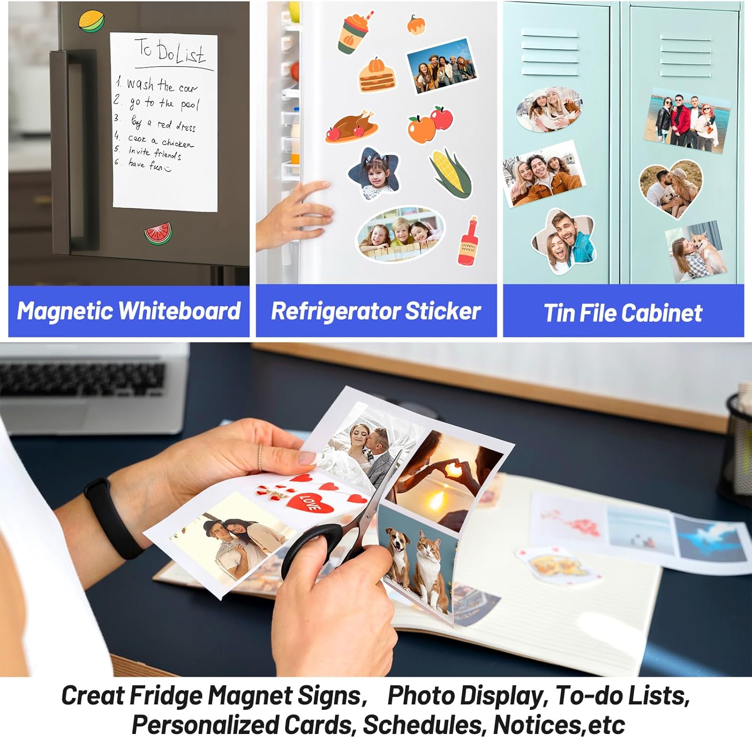 - Flexible & Cuttable: Magnetic sheets for stickers are highly flexible and easy to cut to any desired size or shape using scissors, a paper cutter, or a craft die-cutting machine. Whether you're creating small magnet stickers for your refrigerator magnets or larger custom magnet sheets, you can easily print, cut, and attach to any iron metal surface.