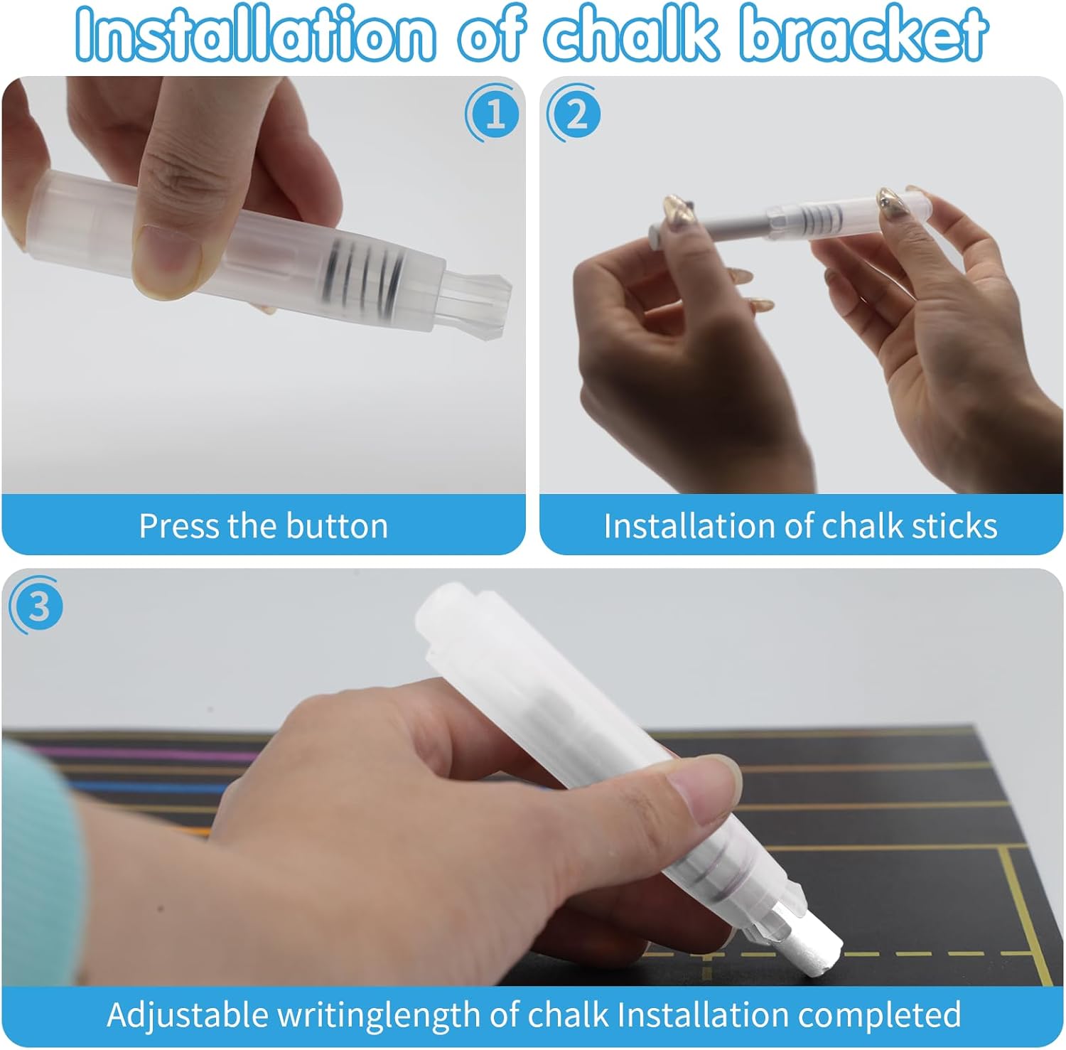 - Complete Chalk Set: Includes 70 pieces of high-quality white dustless chalk, 6 ergonomic chalk holders, and a convenient eraser—everything you need for smooth writing and easy cleanup.